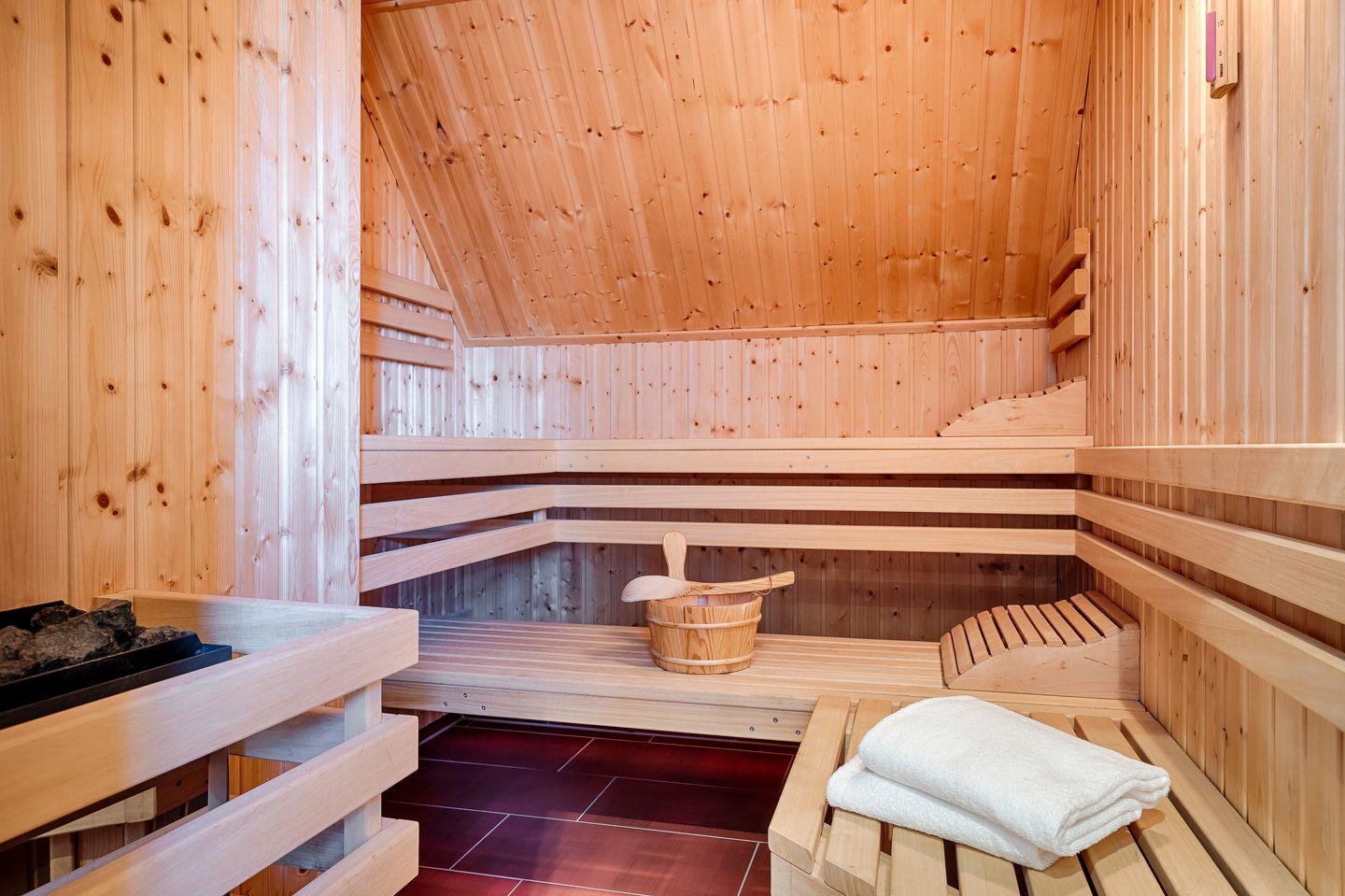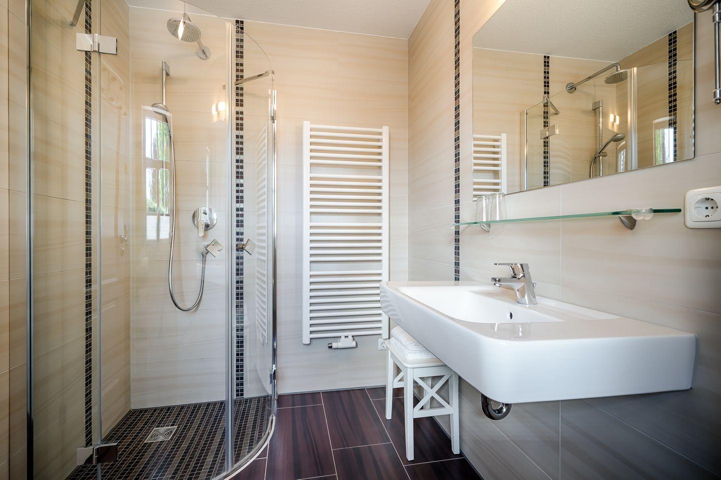 Bad mit ebenerdiger Dusche, anliegende Sauna (ohne Gebühren)