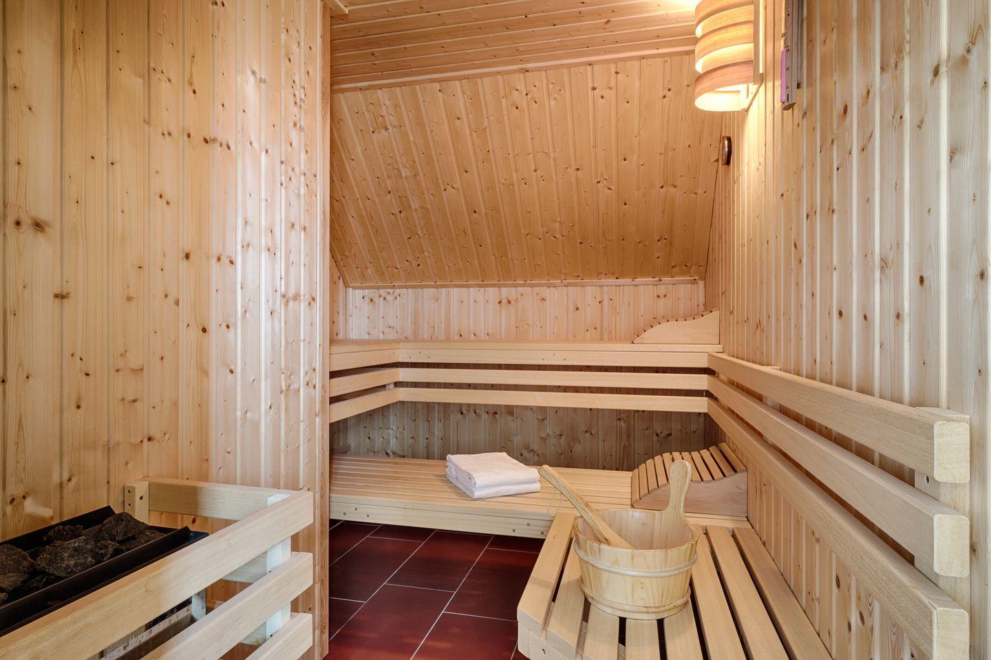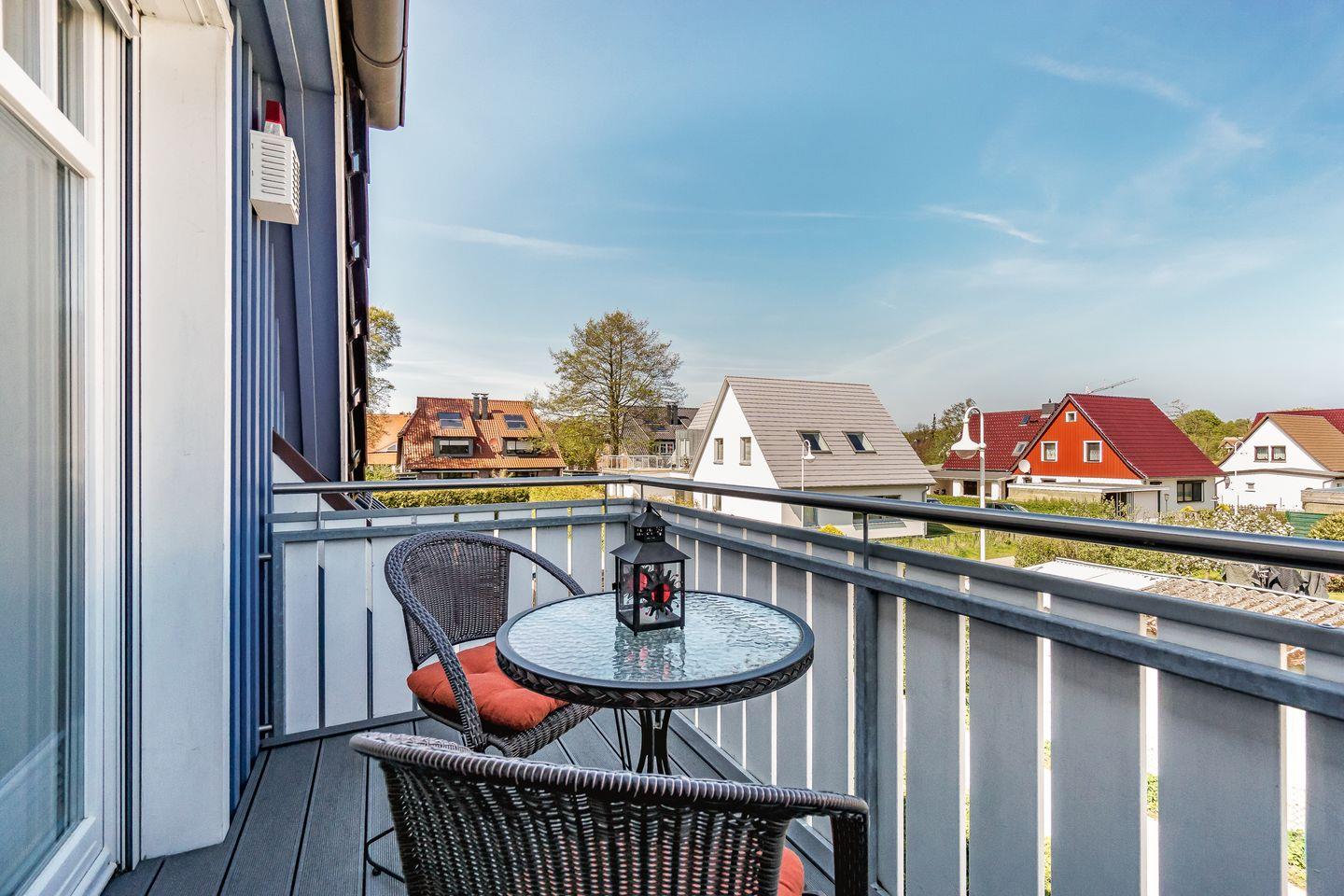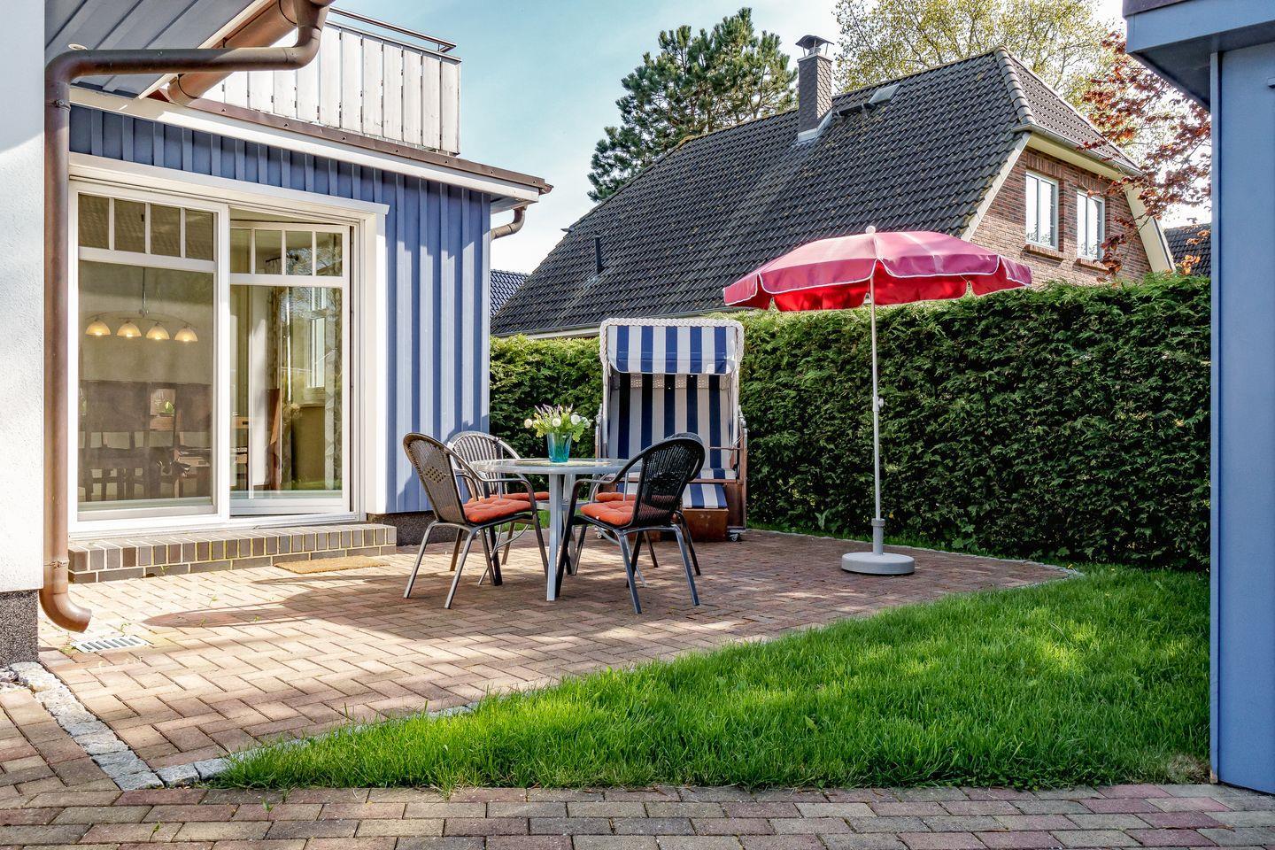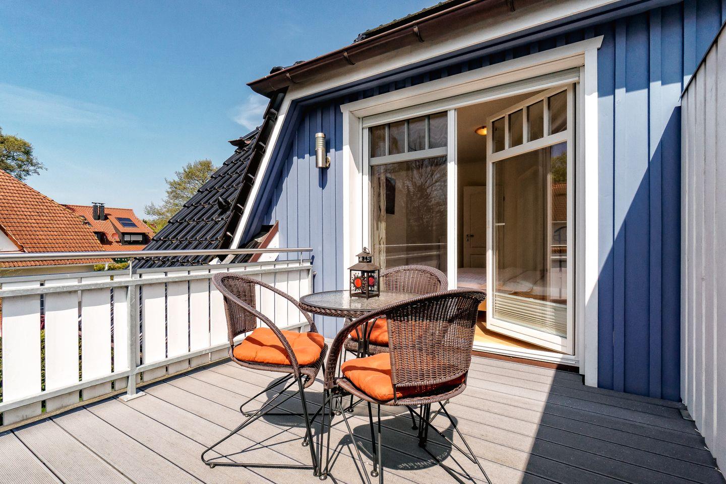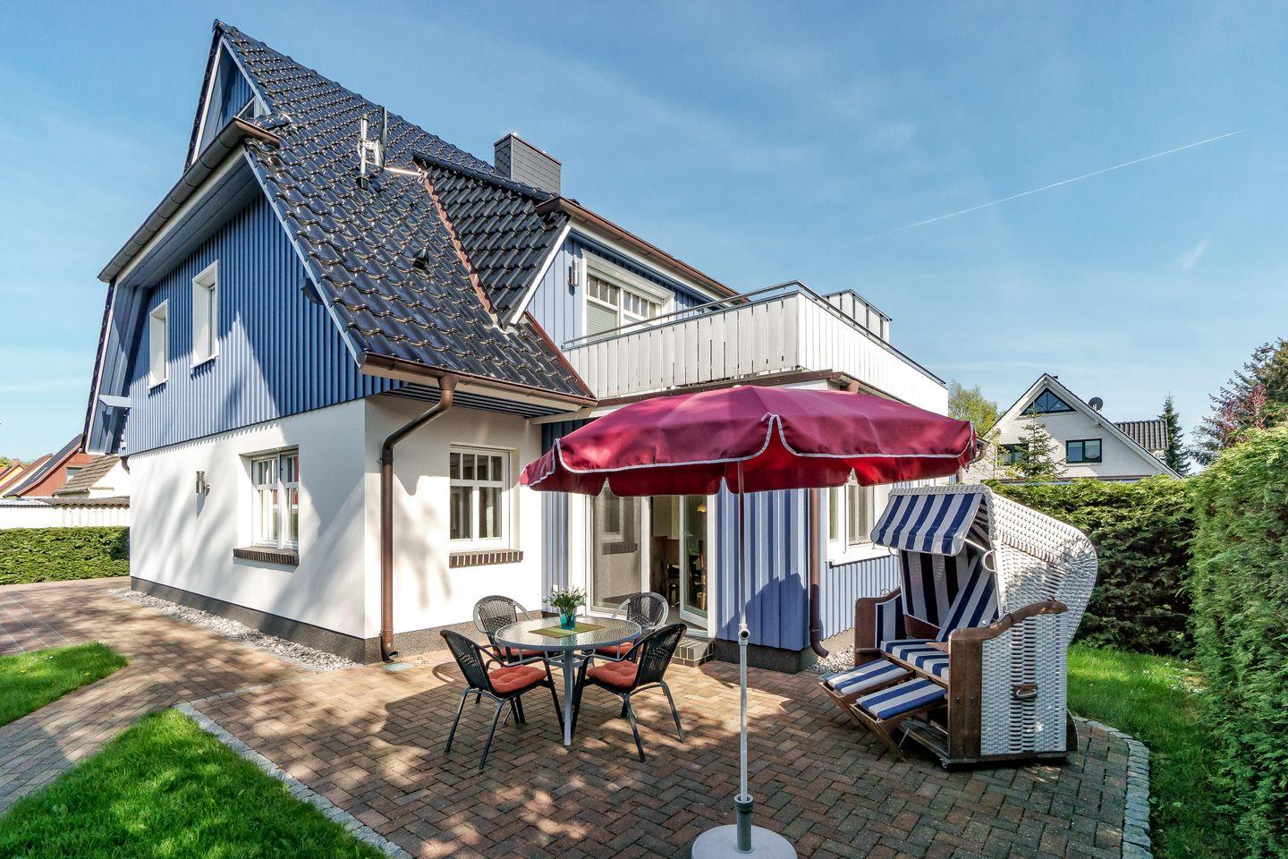 Die Ferienhaushälfte Muschelkiste in Prerow bietet Komfort mit Sauna, Garten und Dachterrasse für entspannte Urlaubstage.