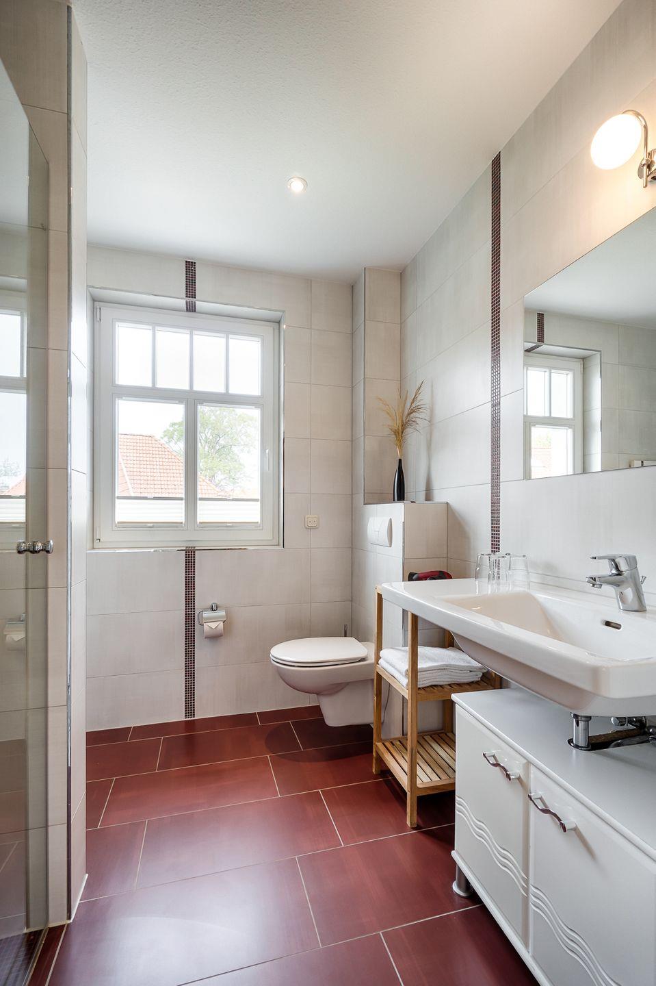 großes Bad mit ebenerdiger Dusche