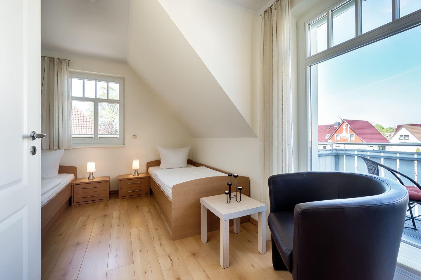 1 Schlafzimmer mit 2 Einzelbetten (0,90x2,00m), verstellbare Lattenroste