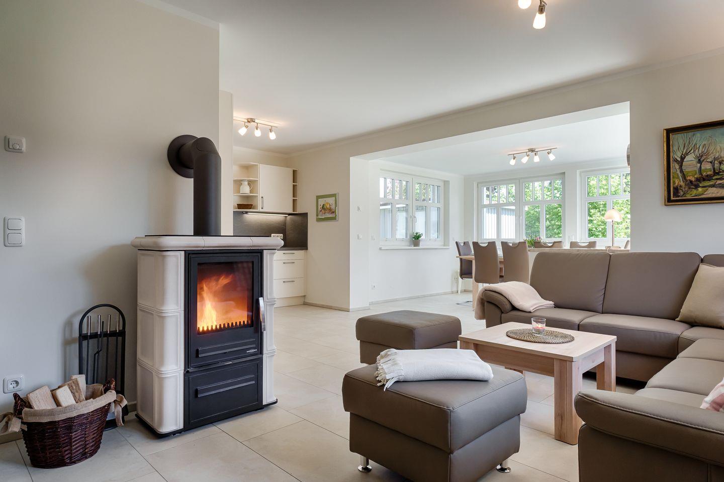 Modernes Ferienhaus Stine in Prerow mit Sauna, Kamin und Wintergarten für erholsame Urlaubstage.