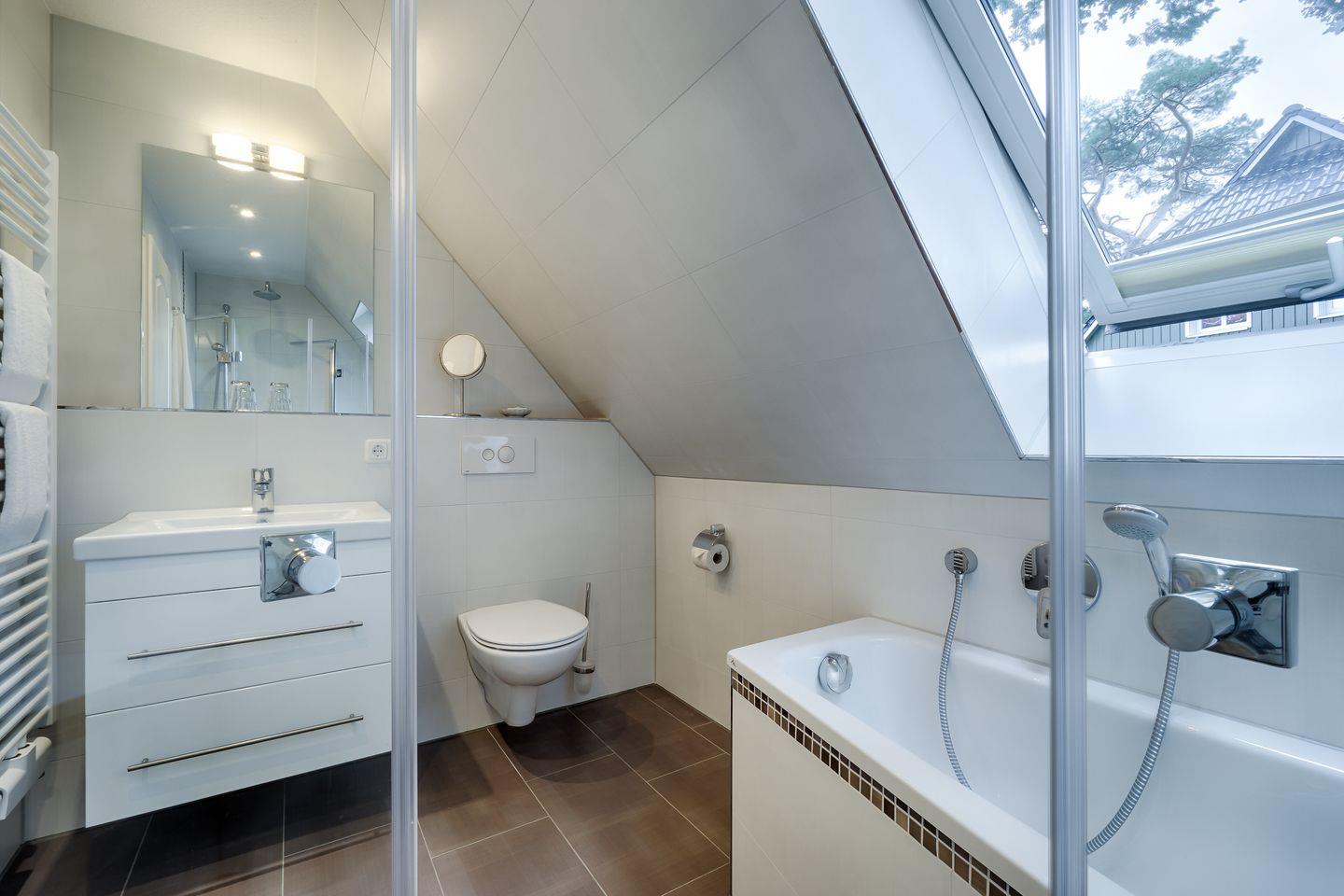 1 Schlafzimmer mit Doppelbett (1,80x2,00m), verstellbare Lattenroste, TV, eigenes Bad mit Wanne/ebenerdiger Dusche ,