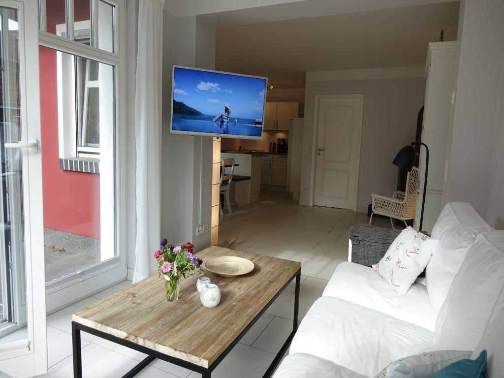 Couch-Ecke und TV in der Darß-Veranda