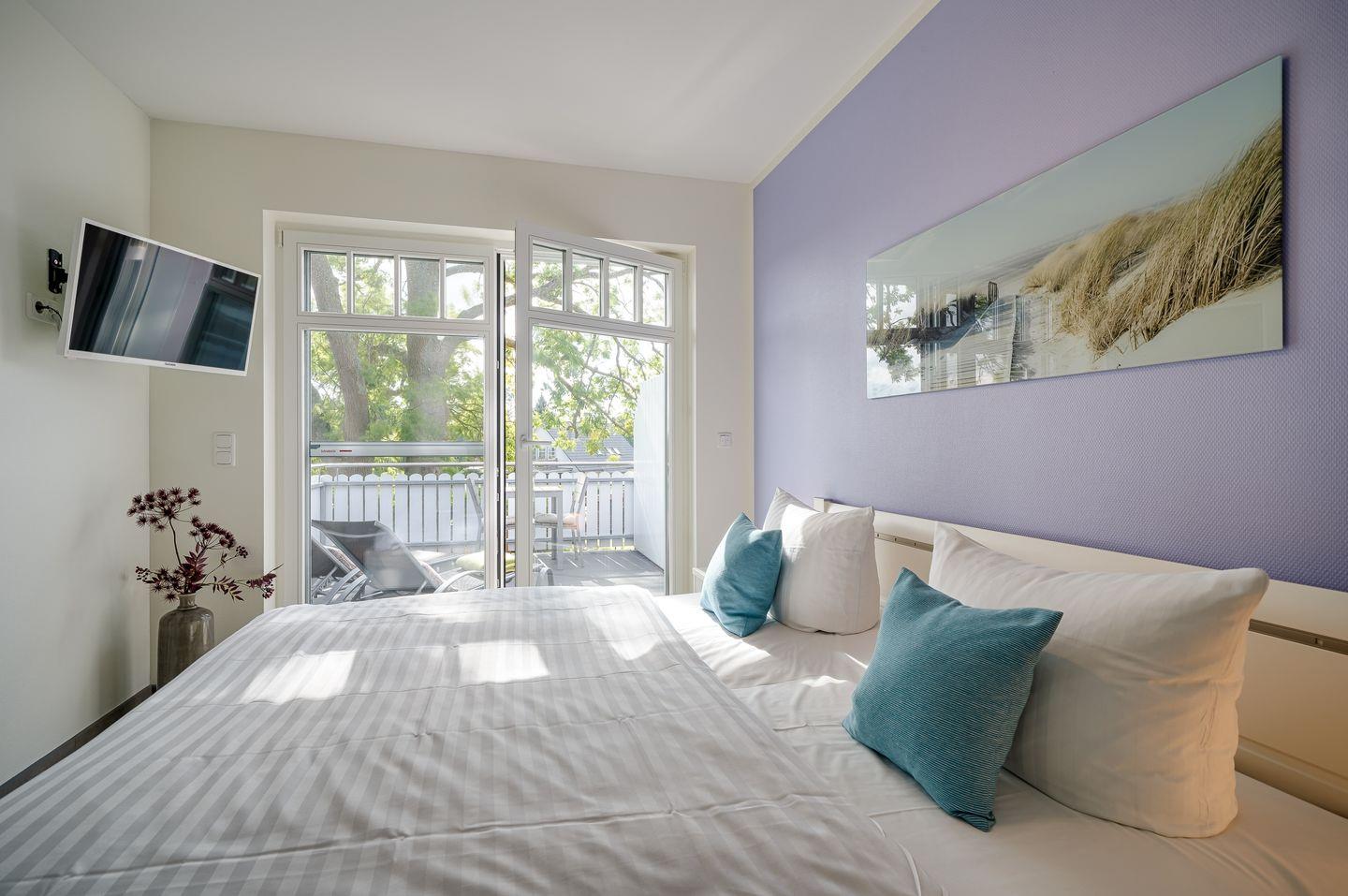 1 Schlafzimmer mit Doppelbett (1,80x2,00m), verstellbare Lattenroste, LCD-Sat-TV