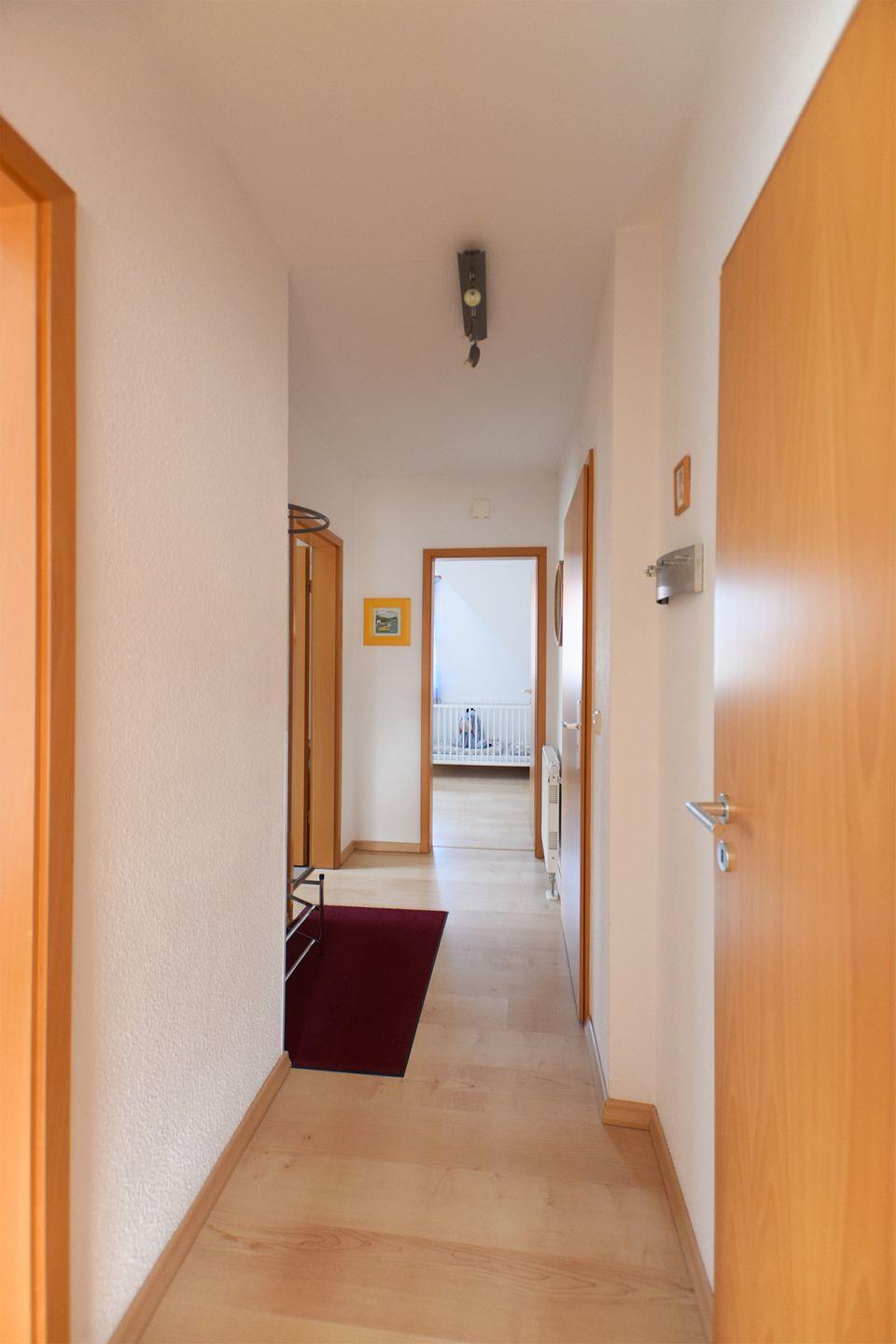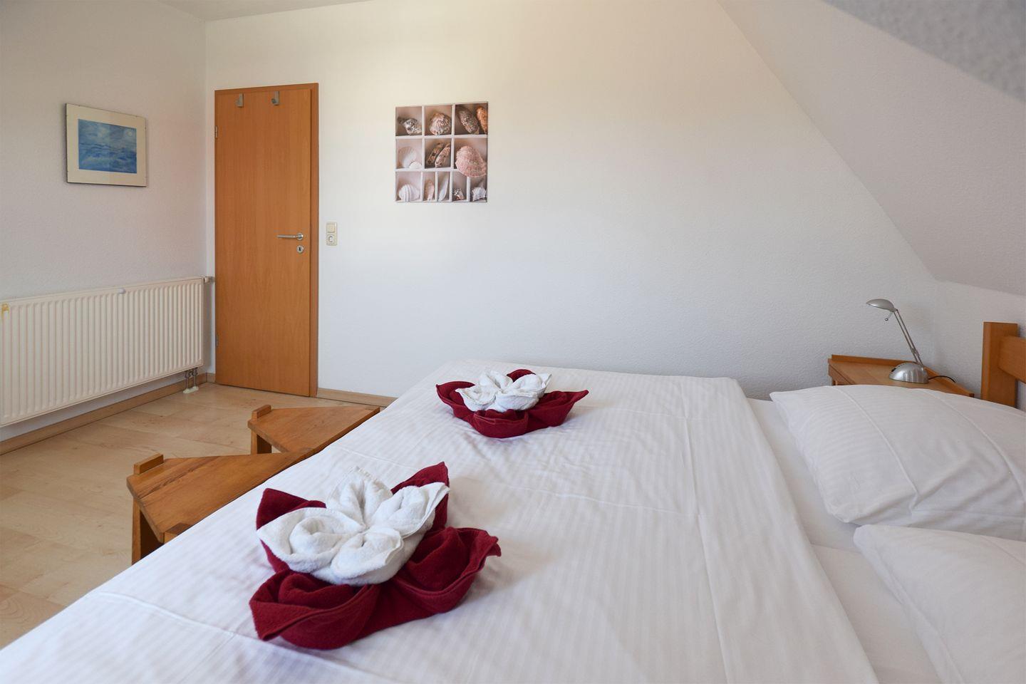 Ferienwohnung bis 4 Personen | ca. 60 m2 Wohnfläche | OG Wohnbereich mit Küchenzeile, Bad, 2 Schlafzimmer | Süd-Balkon | 1 Parkplatz | Wohnbereich Esstisch, Sitzgarnitur, Radio mit CD/DVD-Player, TV SAT/Kabel | Küchenzeile Backofen, Geschirrspüler, Induktionsherd, Kaffeemaschine, Kühlschrank mit Gefrierfach, Mikrowelle, Toaster, Wasserkocher | Bad Dusche, WC | 2 Schlafzimmer 1 Doppelbett (180 x 200 cm), 2 Einzelbetten (90 x 200 cm) | Kinderbett, Kinderhochstuhl, Waschmaschine | Gemeinschaftliche Nutzung von
