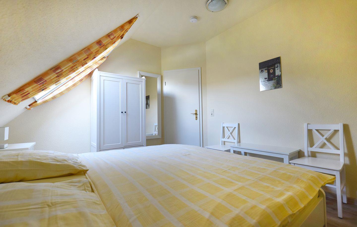 Reihenhaus bis 5 Personen | Haustiere möglich | ca. 60 qm Wohnfläche | EG Wohnzimmer, Küche, Bad, Treppenhaus | DG (Treppe mit Kindersicherung) 2 Schlafzimmer | Terrasse | 1 Parkplatz | Wohnzimmer Schlafsofa, Radio mit CD/DVD-Player, TV SAT/Kabel | Küche mit Esstisch, Backofen, Herd/Cerankochfeld, Geschirrspüler, Kühlschrank mit Gefrierfach, Mikrowelle, Kaffeemaschine, Toaster, Wasserkocher | Bad Dusche, WC | 2 Schlafzimmer 1 Doppelbett (180 x 200 cm), 2 Einzelbetten (90 x 200 cm) | Inkl. Babygitterbett, Kinderhochstuhl | Gemeinschaftliche Nutzung von Fahrradschuppen, Grillecke, Sauna, Spielplatz, Waschmaschine, WLAN | Bettwäsche und 2 Handtücher pro Gast sind ab 7 Übernachtungen inklusive