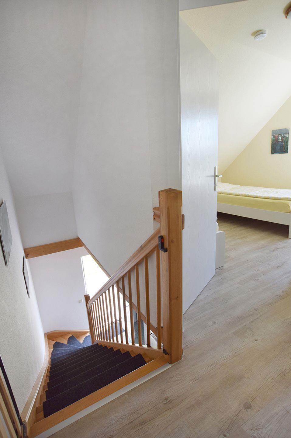 Im Obergeschoss befinden sich zwei Schlafzimmer: ein Schlafzimmer mit Doppelbett (180 x 200 cm) und ein weiteres mit zwei Einzelbetten (90 x 200 cm). Für kleine Gäste stehen ein Babygitterbett und ein Kinderhochstuhl zur Verfügung. Bettwäsche und 2 Handtücher pro Person sind ab 7 Übernachtungen ebenfalls inklusive. Außerdem genießen Sie eine Terrasse zum Entspannen und einen eigenen Parkplatz direkt am Haus.
