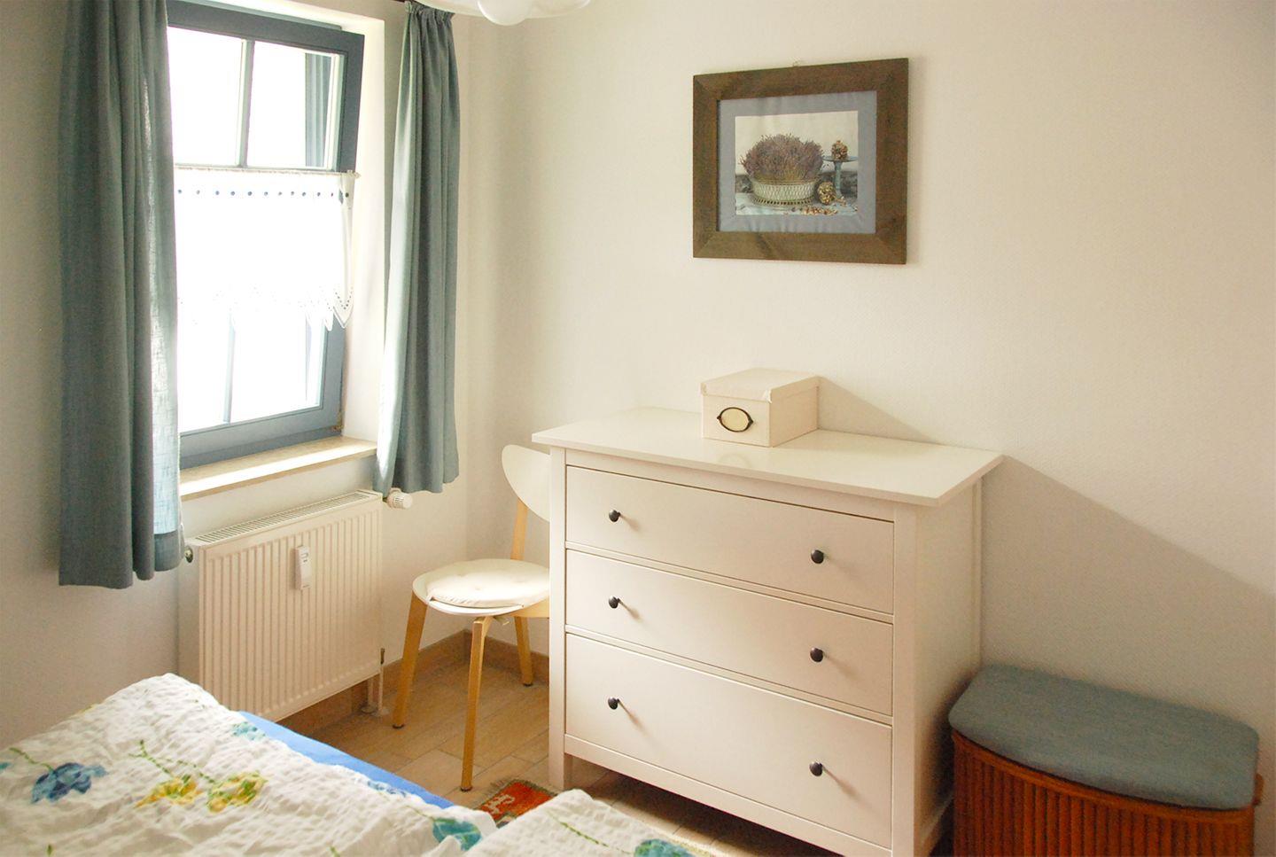 Ferienwohnung bis 3 Personen | Haustiere möglich | ca. 42 m² Wohnfläche | OG Wohnbereich mit Einbauküche, Bad, 1 Schlafzimmer | West-Balkon | 1 Parkplatz | Wohnbereich Esstisch, Schlafsofa, Sitzgarnitur, Radio mit CD/DVD-Player, TV SAT/Kabel | Einbauküche Backofen, Geschirrspüler, Herd, Kaffeemaschine, Kühlschrank mit Gefrierfach, Toaster, Wasserkocher | Bad Dusche, WC | 1 Schlafzimmer 1 Doppelbett (180 x 200 cm) | Fliegengitter | Gemeinschaftliche Nutzung von Fahrradschuppen, Spielplatz, Waschmaschine/Trockner, WLAN | ! Grillen nicht gestattet !