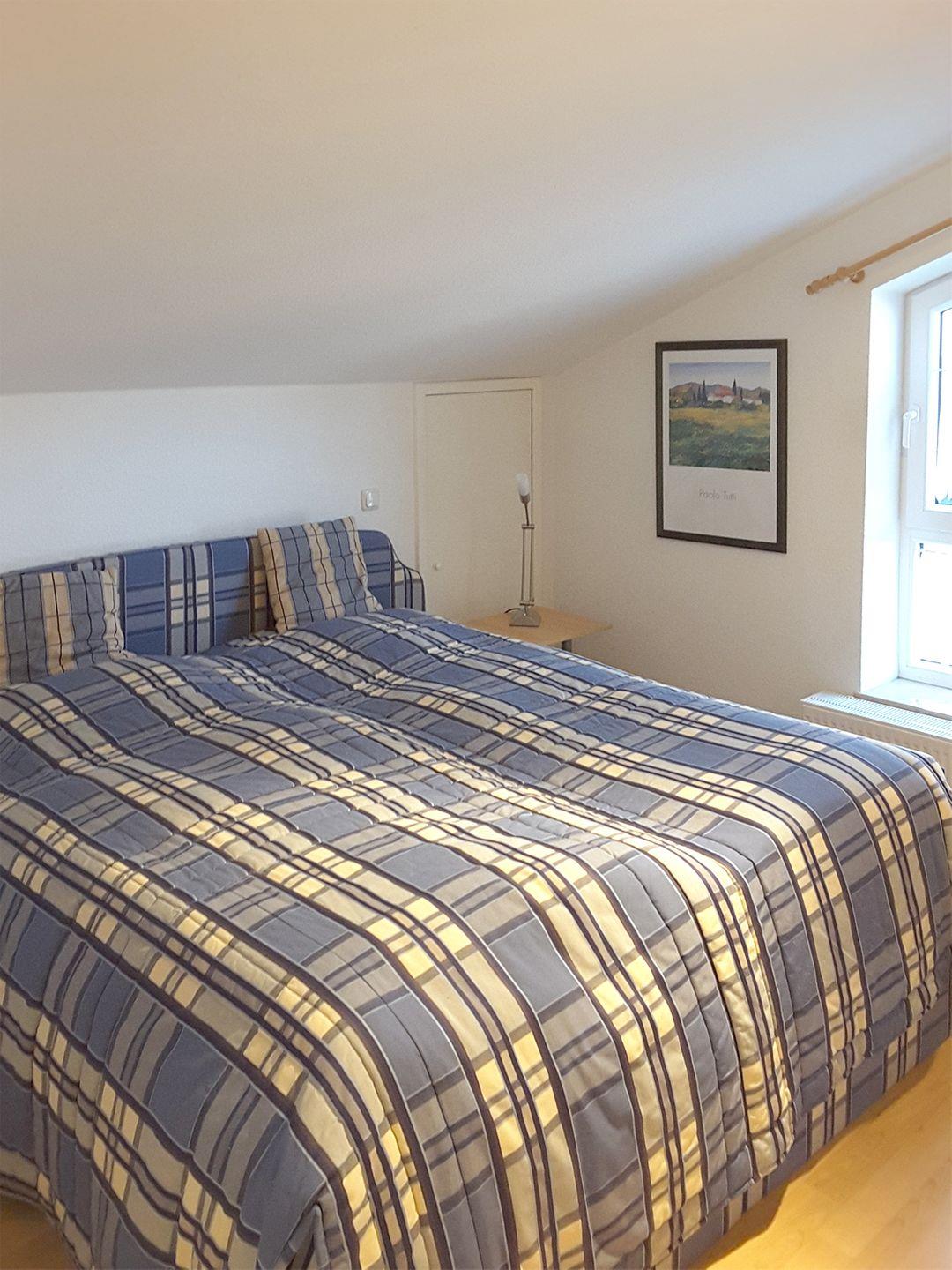 Für erholsame Nächte stehen Ihnen zwei Schlafzimmer zur Verfügung: Eines mit einem Doppelbett (180 x 200 cm) und ein weiteres mit zwei Einzelbetten (80 x 190 cm).