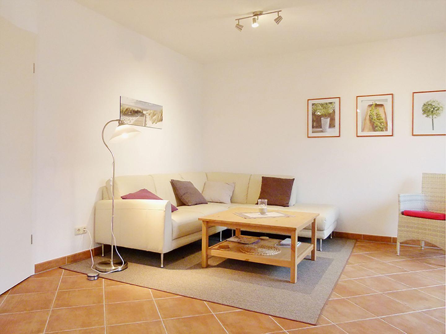 Ferienwohnung bis 4 Personen | ca. 60 m² Wohnfläche | OG Wohn-/Essbereich, Einbauküche, Flur, Bad, 2 Schlafzimmer | Süd-Balkon | 1 Parkplatz | Wohn-/Essbereich Esstisch, Sofaecke, Radio mit CD/DVD-Player, TV SAT/Kabel | Küchenzeile Backofen, Geschirrspüler, Herd/Cerankochfeld, Kaffeemaschine, Kühlschrank mit Gefrierfach, Mikrowelle, Toaster, Wasserkocher | Bad Fenster, Dusche, WC | 2 Schlafzimmer SZ 1 mit 1 Doppelbett (180 x 200 cm), SZ 2 mit 2 Einzelbetten (90 x 200 cm) | ab 7 ÜN inkl. Bettwäsche (ohne Wechsel), Fahrradschuppen, Balkon mit Gartenmöbeln und Strandkorb, WLAN