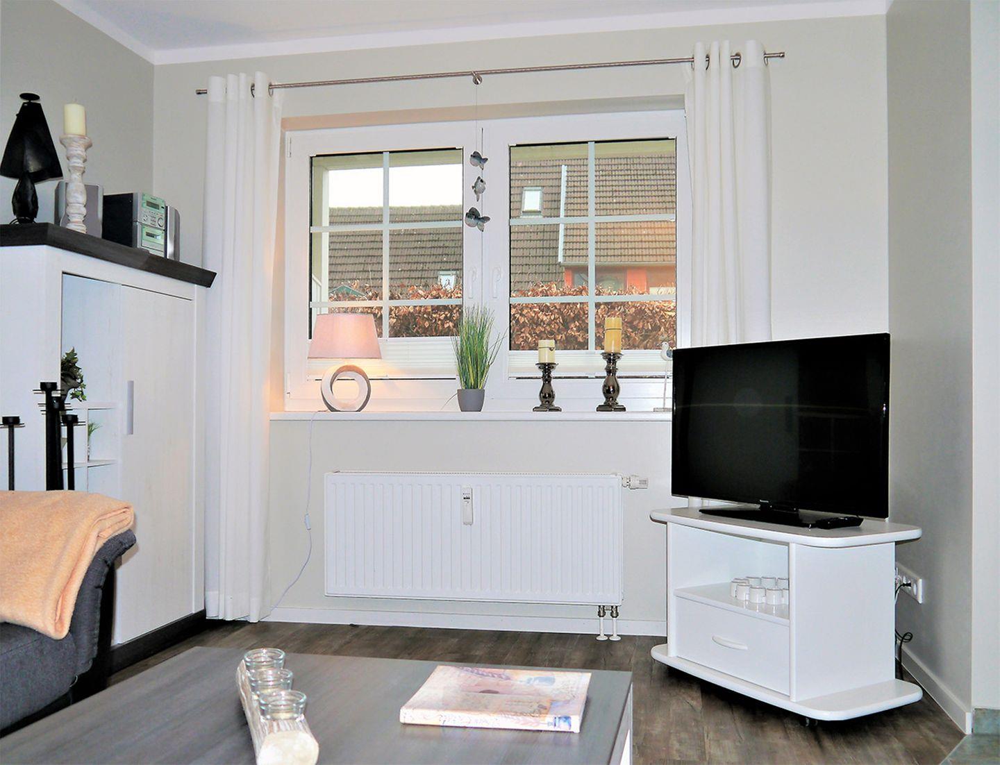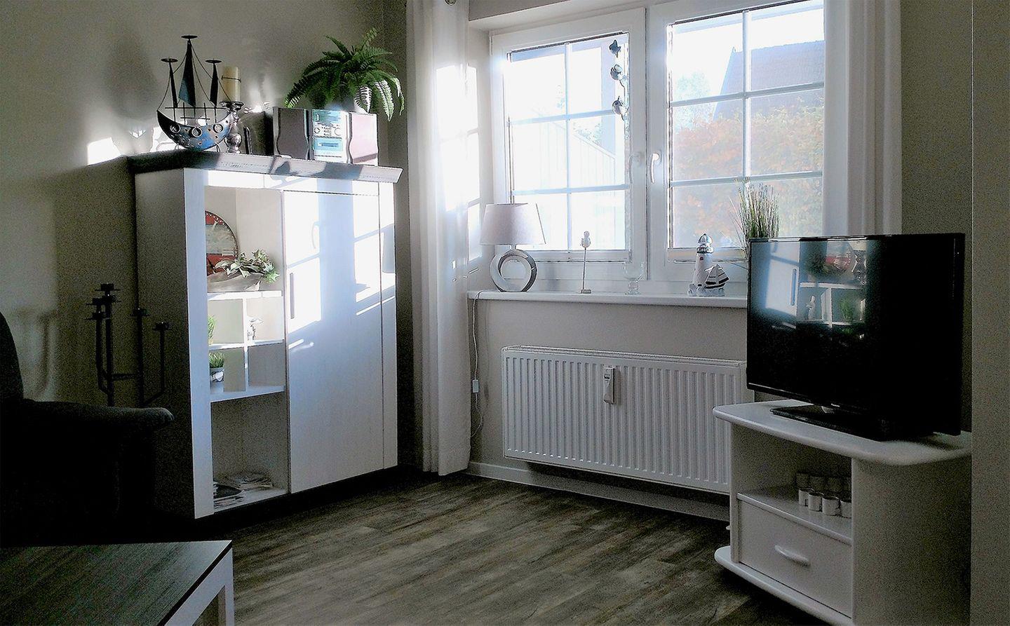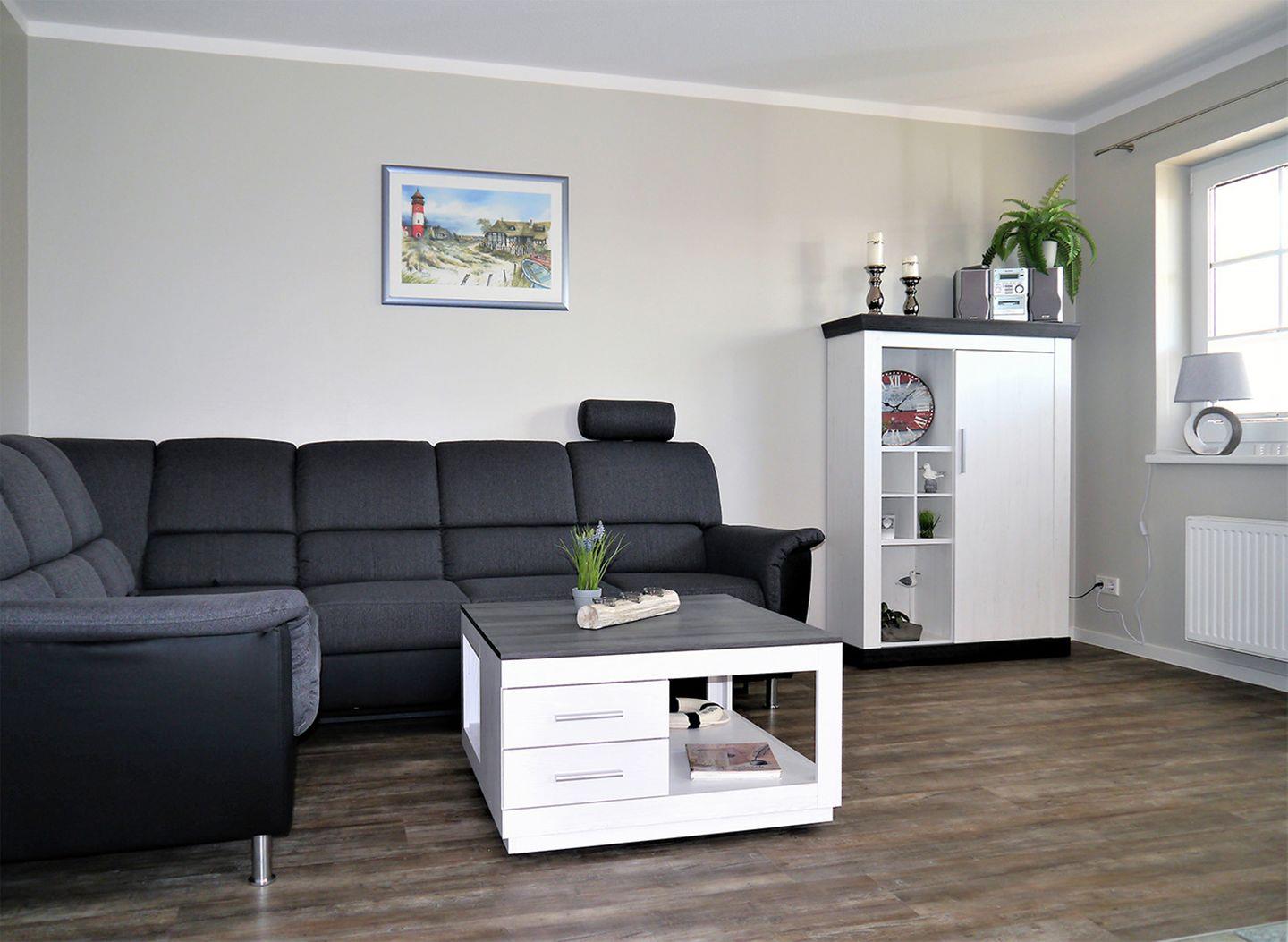 Die gemütliche Ferienwohnung für bis zu 4 Personen erstreckt sich über ca. 63 m² und befindet sich im Erdgeschoss. Der großzügige Wohnbereich ist mit einem Esstisch, einer komfortablen Sitzgarnitur, einem Radio mit CD-Player und einem SAT-TV ausgestattet und bietet ausreichend Platz für gemeinsame Stunden.