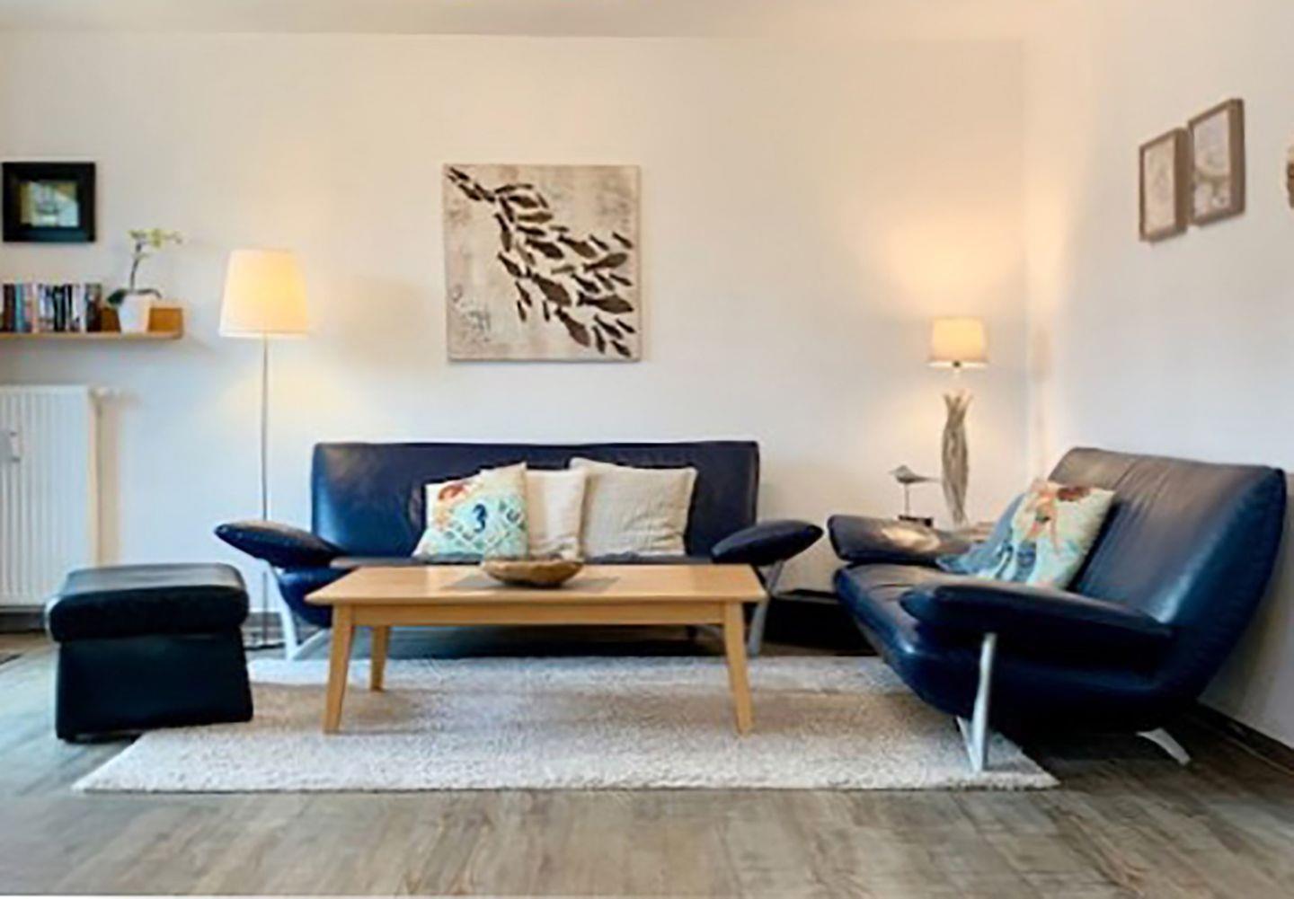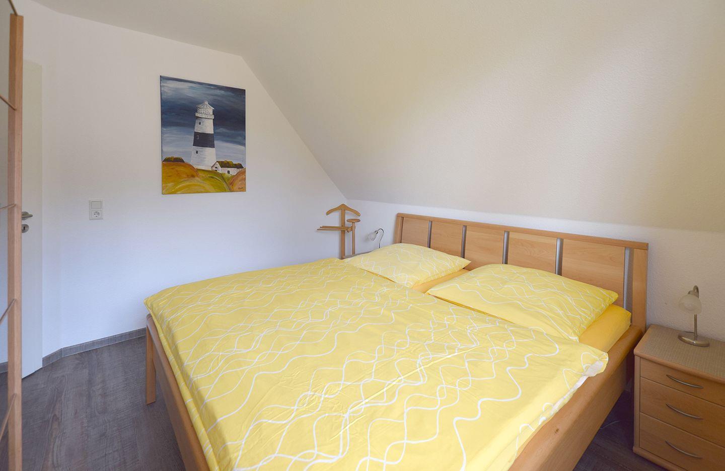 Ferienwohnung bis 4 Personen | ca. 63 m² Wohnfläche | OG Wohnbereich mit Einbauküche, Bad, 2 Schlafzimmer | Süd-Balkon | 1 Parkplatz | Wohnbereich Esstisch, Sitzgarnitur, Radio mit CD/DVD-Player, TV SAT/Kabel | Einbauküche Backofen, Geschirrspüler, Herd, Kaffeemaschine, Kühlschrank mit Gefrierfach, Mikrowelle, Toaster, Wasserkocher | Bad Dusche, Waschmaschine, WC | 1 Schlafzimmer mit einem Doppelbett (180 x 200 cm) | 1 Schlafzimmer mit zwei Einzelbetten (90 x 200 cm) I Kinderhochstuhl | Gemeinschaftliche Nutzung von Fahrradschuppen, WLAN