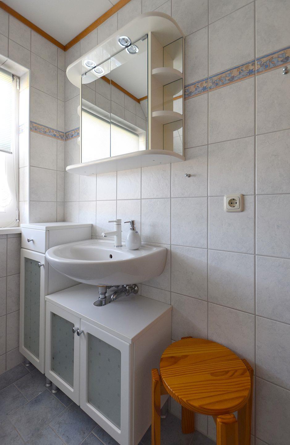 Im Obergeschoss befinden sich zwei Schlafzimmer. Das erste Schlafzimmer bietet ein Doppelbett (160 x 200 cm), ein Einzelbett (90 x 200 cm) sowie ein Babybett, perfekt für Familien mit kleinen Kindern. Das zweite Schlafzimmer ist mit einem kleineren Doppelbett (140 x 200 cm) ausgestattet. Beide Schlafzimmer bieten ausreichend Stauraum und eine gemütliche Atmosphäre für einen erholsamen Schlaf. Im Obergeschoss finden Sie außerdem ein Tageslichtbad mit Dusche und WC.