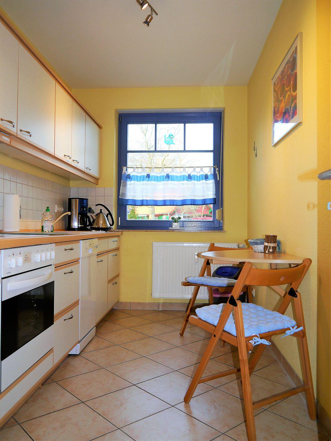 Diese gemütliche Ferienwohnung bietet auf ca. 68 m² Wohnfläche Platz für bis zu 2 Personen und eignet sich hervorragend für Paare, die Ruhe und Erholung suchen. Haustiere sind hier willkommen, sodass Sie auch mit Ihrem Vierbeiner einen angenehmen Urlaub verbringen können. Die Wohnung befindet sich im Erdgeschoss und verfügt über einen hellen Wohn-/Essbereich, in dem Sie sich nach einem erlebnisreichen Tag entspannen können. Der Wohnbereich ist mit einer bequemen Sitzgarnitur, einem Esstisch sowie einem Radio mit CD-Player und SAT-TV ausgestattet. Die separate Küche lässt keine Wünsche offen und ist mit einem Backofen, Geschirrspüler, Cerankochfeld, Kaffeemaschine, Mikrowelle, Toaster und Wasserkocher ausgestattet.