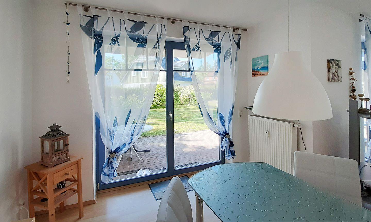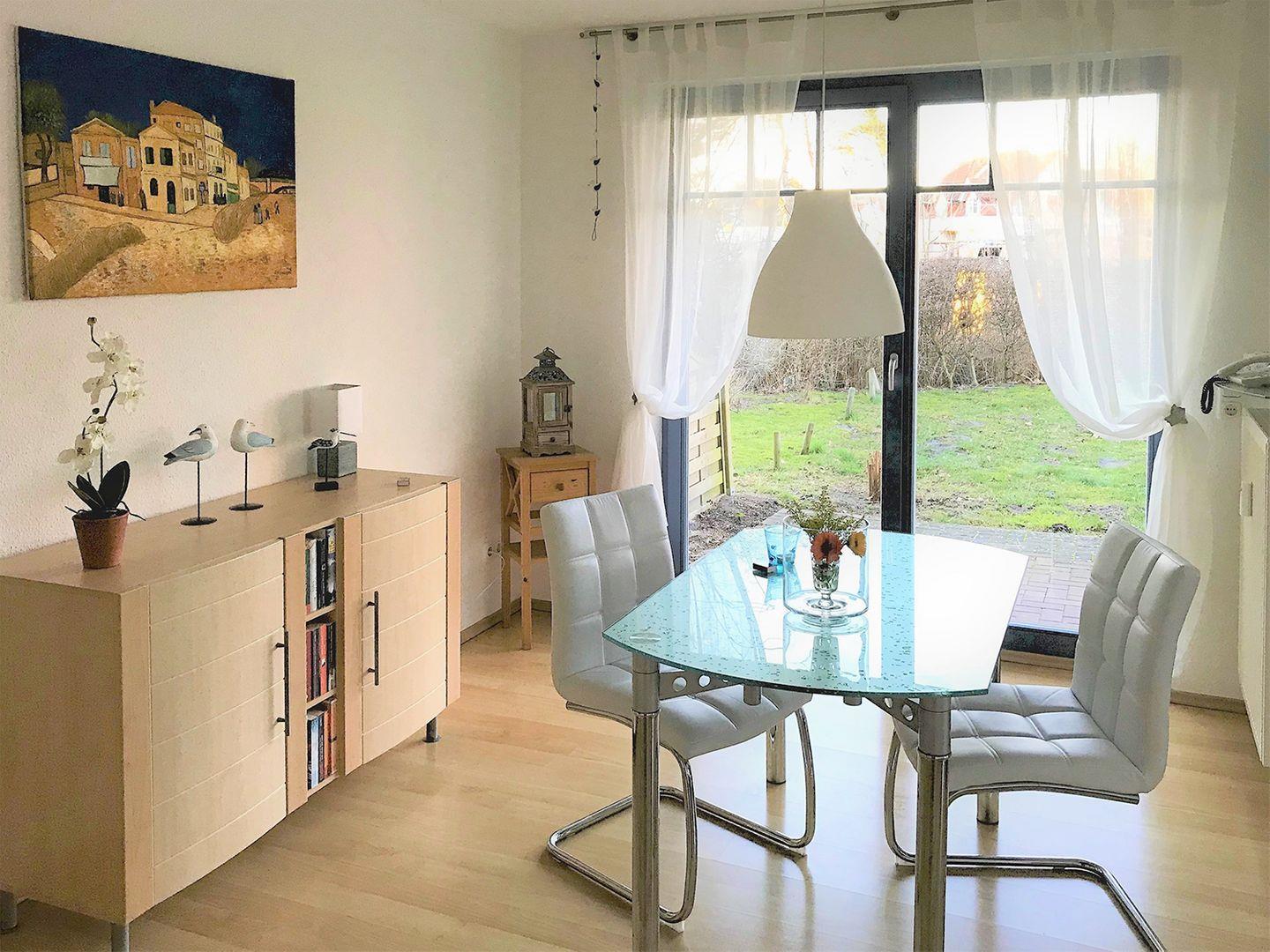 Vom Wohn-/Essbereich gelangen Sie auf die Terrasse, die mit Gartenmöbeln und einem Elektrogrill ausgestattet ist – ideal für entspannte Abende im Freien.