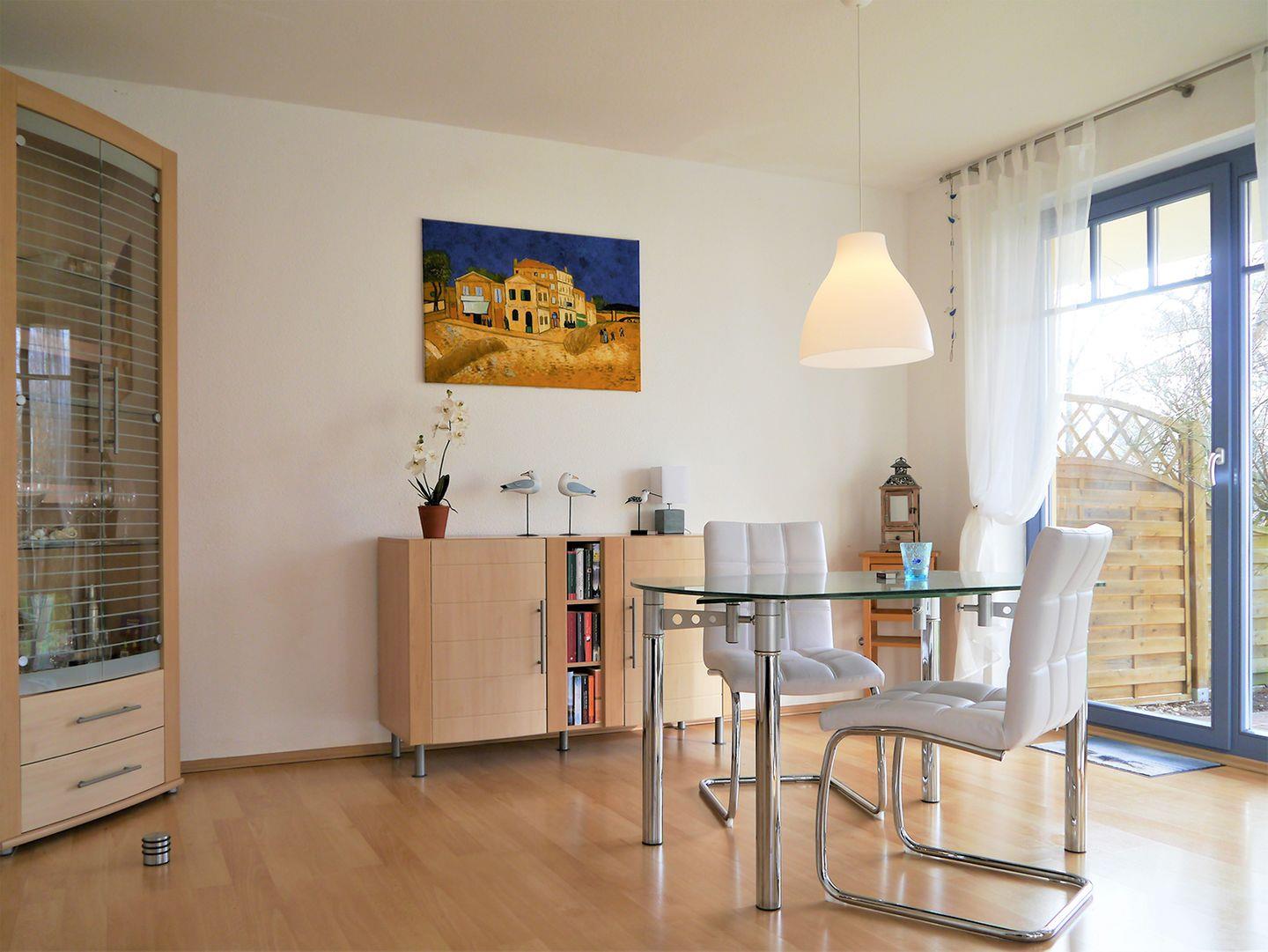 Großzügige Erdgeschosswohnung in Ostseebad Prerow mit Terrasse, WLAN und Hund erlaubt – ideal für entspannte Tage zu zweit.