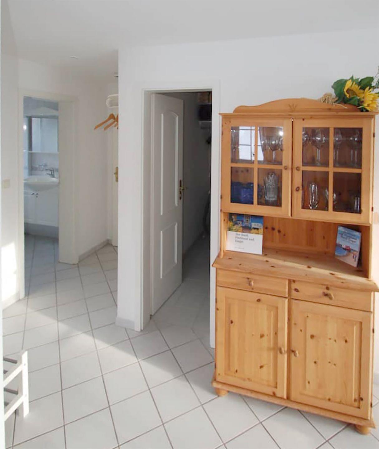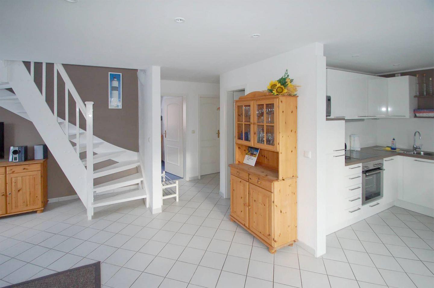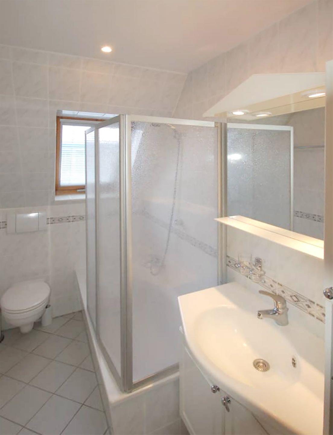 Ferienwohnung bis 4 Personen | Ca. 90 m2 Wohnfläche | OG Wohnbereich mit Küchenzeile, Bad, 1 Schlafzimmer | DG Bad, 1 Schlafzimmer | Süd-Loggia | 1 Parkplatz | Wohnbereich Esstisch, Sitzgarnitur, Radio, SAT-TV | Küchenzeile Backofen, Geschirrspüler, Herd, Kaffeemaschine, Kühlschrank mit Gefrierfach, Mikrowelle, Toaster, Wasserkocher | 2 Bäder Badewanne, WC im OG | Dusche, WC im DG | 2 Schlafzimmer 1 Doppelbett (180 x 200 cm) im OG | 2 Einzelbetten (90 x 200 cm) und TV im DG | Bettwäsche und Handtücher ab 7 ÜN inkl., Kinderhochstuhl, WLAN
