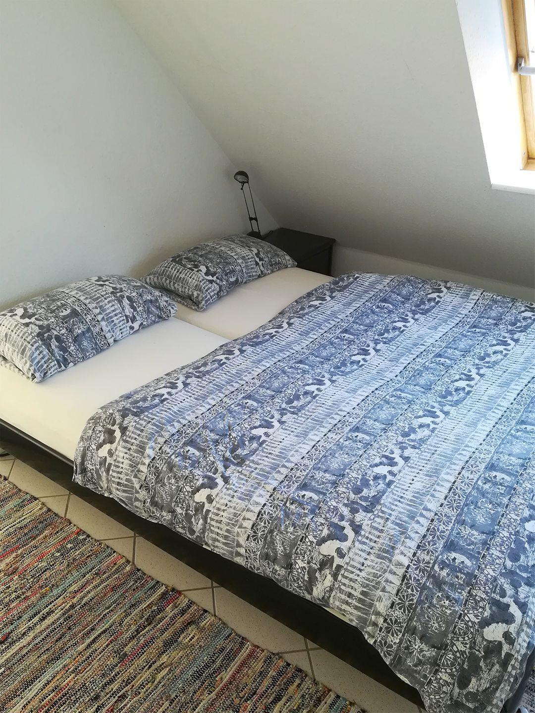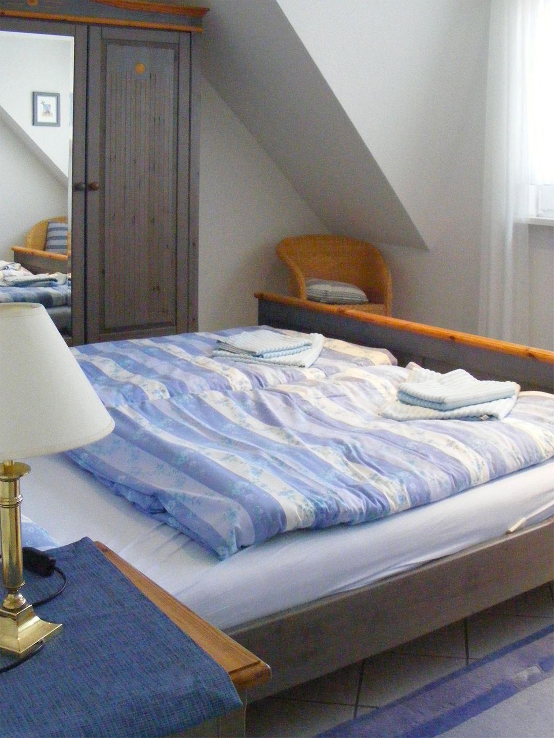 Im Obergeschoss befindet sich auch das erste Schlafzimmer mit einem komfortablen Doppelbett (180 x 200 cm). Das Badezimmer im Obergeschoss bietet eine Badewanne und ein WC. Im Dachgeschoss erwartet Sie das zweite Schlafzimmer ebenfalls mit einem Doppelbett (180 x 200 cm) sowie ein zweites Badezimmer mit Dusche und WC.