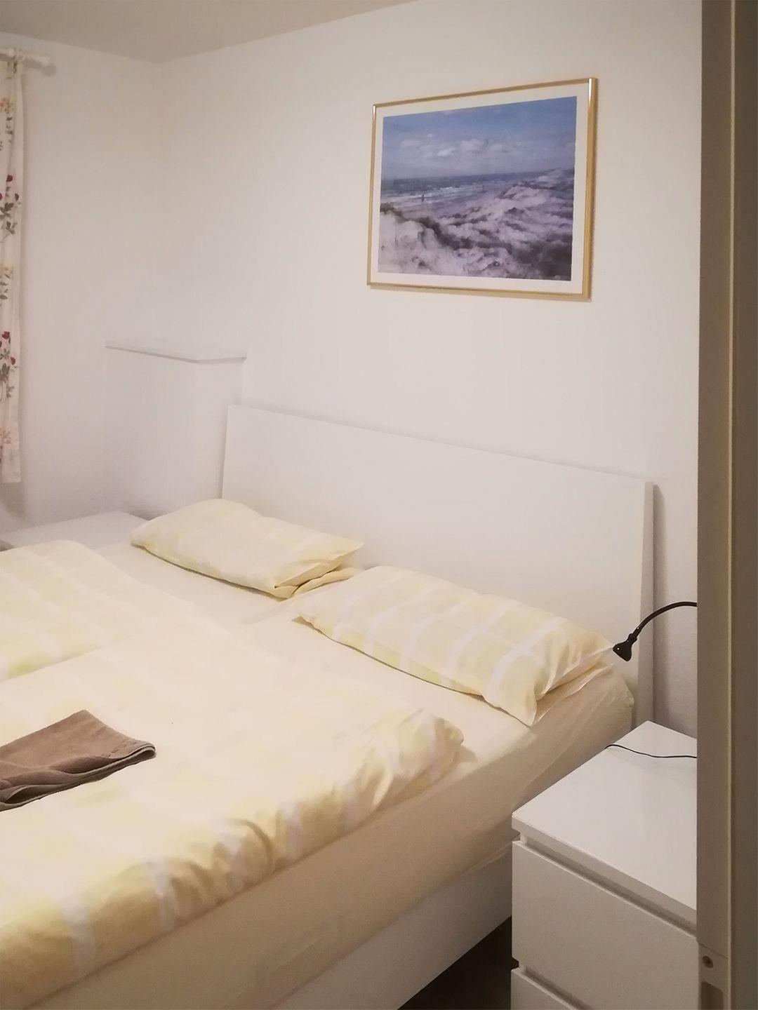 Es gibt zwei Schlafzimmer, beide mit einem großzügigen Doppelbett (180 x 200 cm), sodass bis zu vier Personen bequem schlafen können. Ab 7 Übernachtungen ist Bettwäsche im Preis enthalten. Für kleine Gäste stehen ein Kinderhochstuhl und ein Reisebett zur Verfügung.