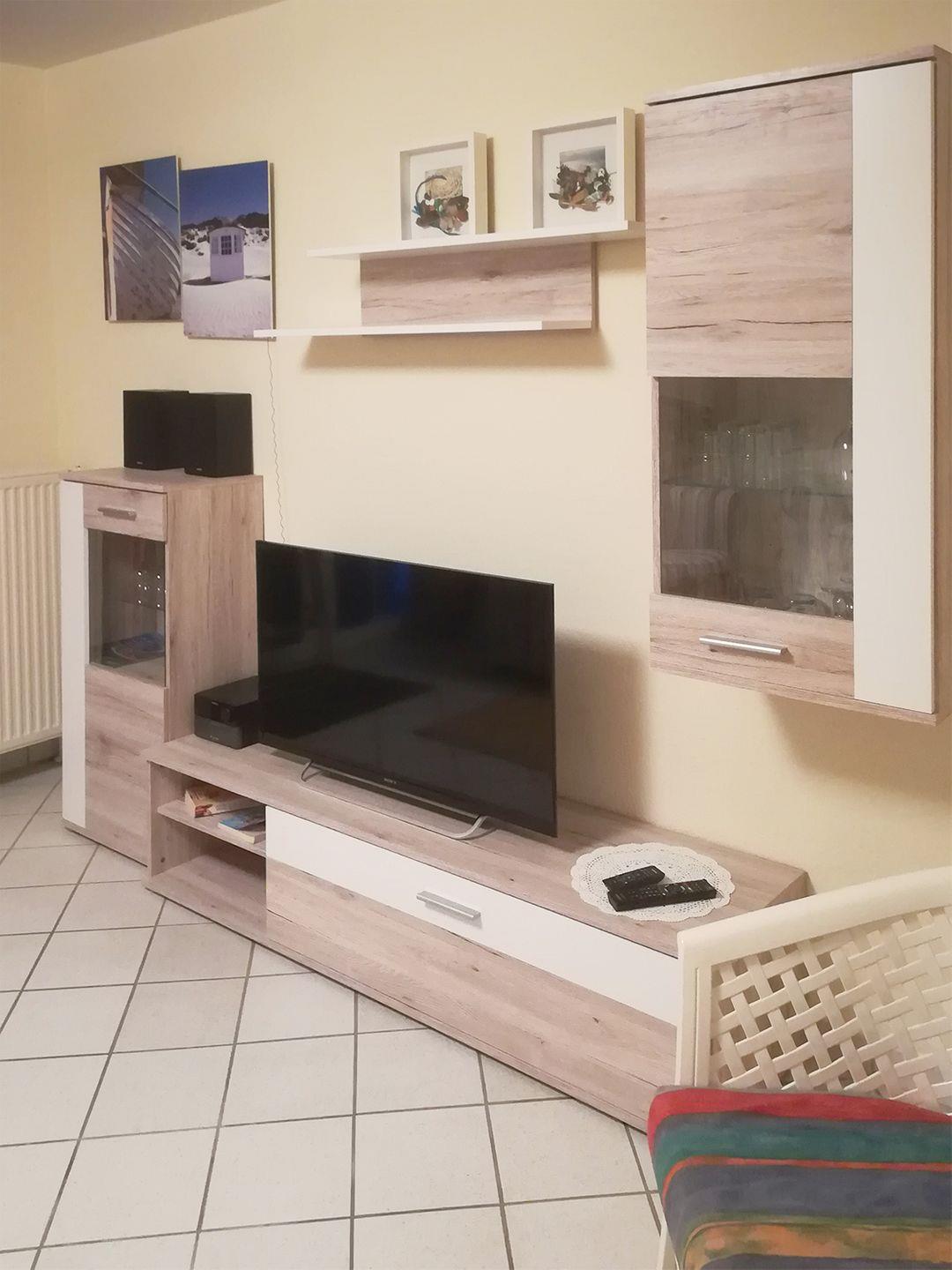 Ferienwohnung bis 4 Personen | Ca. 60 m2 Wohnfläche | EG Wohnbereich mit Küchenzeile, Bad, 2 Schlafzimmer | West-Terrasse | 1 Parkplatz | Wohnbereich Esstisch, Sitzgarnitur, Radio mit CD-Player, SAT-TV | Küchenzeile Backofen, Geschirrspüler, Herd, Kaffeemaschine, Kühlschrank mit Gefrierfach, Mikrowelle, Toaster, Wasserkocher, Waschmaschine | Bad Badewanne, WC | 2 Schlafzimmer 1 Doppelbett (180 x 200 cm), 1 Doppelbett (180 x 200 cm) | ab 7 ÜN inkl. Bettwäsche, Kinderhochstuhl, Reisebett, WLAN