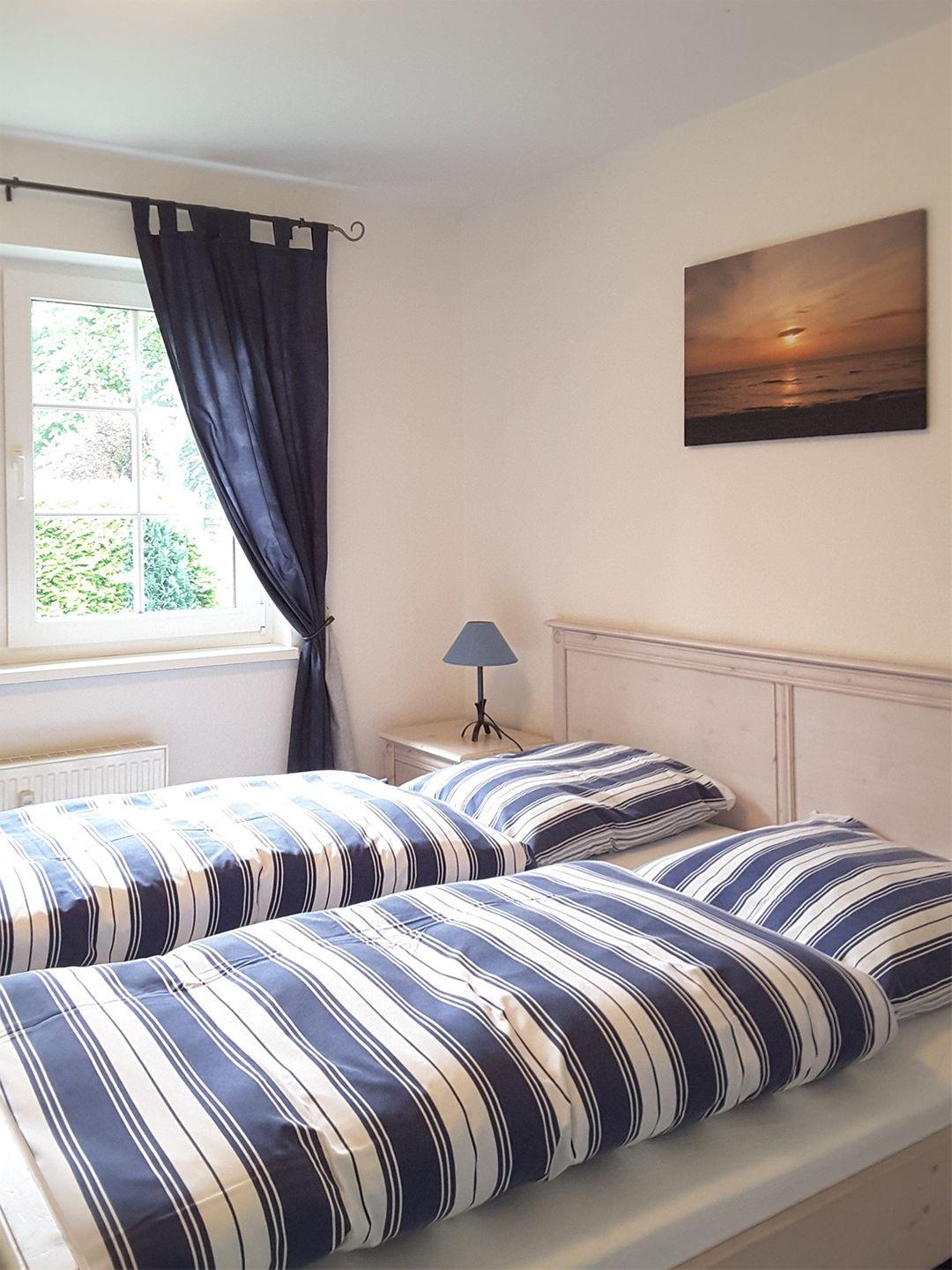 Ferienwohnung bis 4 Personen | ca. 60 m² Wohnfläche | EG Wohnbereich mit Küchenzeile, Bad, 2 Schlafzimmer | West-Terrasse | 1 Parkplatz | Wohnbereich Esstisch, Sitzgarnitur, Radio mit CD/DVD-Player, SAT-TV | Küchenzeile Backofen, Geschirrspüler, Herd, Kaffeemaschine, Kühlschrank mit Gefrierfach, Toaster, Wasserkocher | Bad bodengleiche Dusche, WC | 2 Schlafzimmer 1 Doppelbett (180 x 200 cm), 1 Doppelbett (180 x 200 cm) | Ab 7 ÜN inkl. Bettwäsche | WLAN