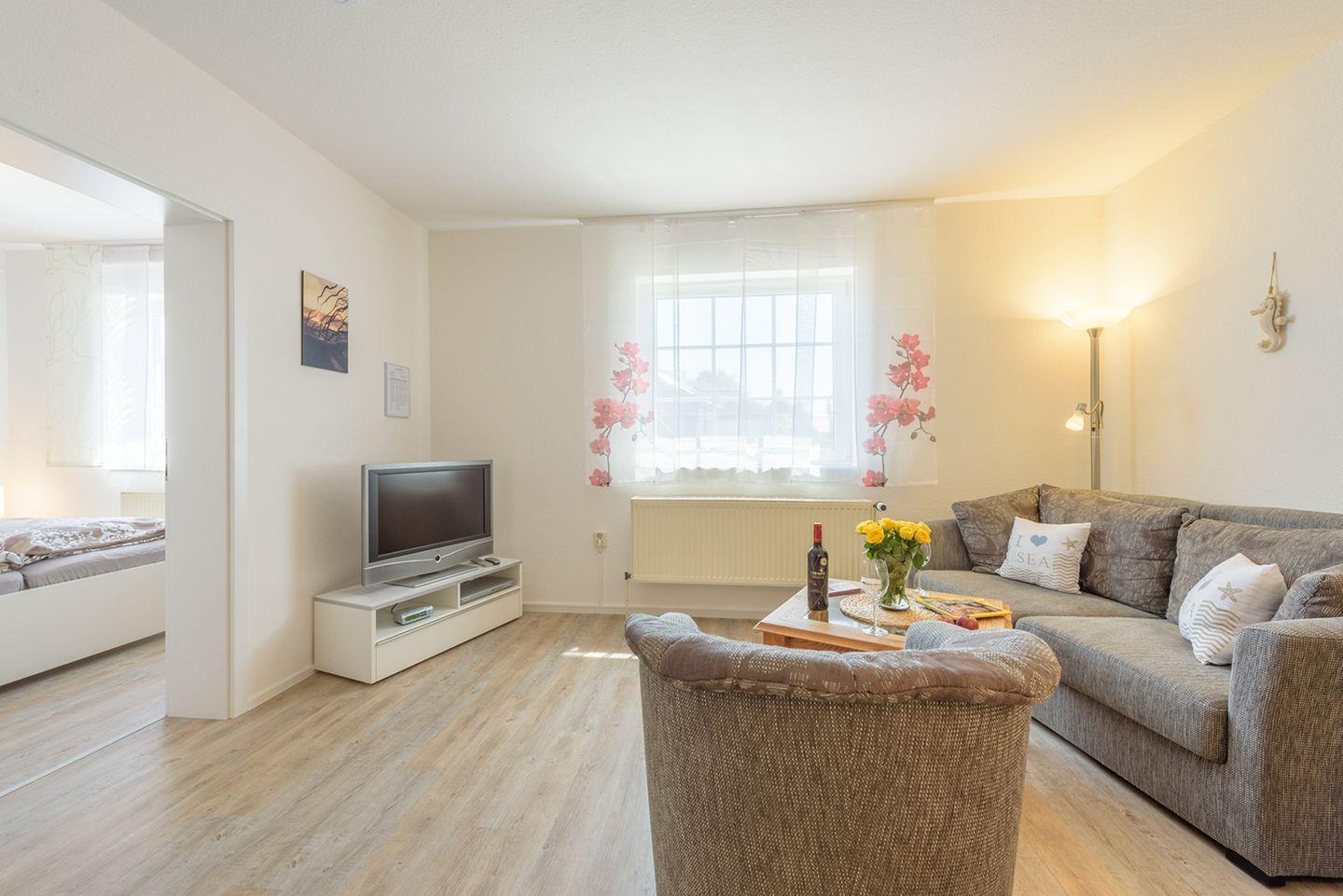 Diese gemütliche Ferienwohnung für bis zu 2 Erwachsene und ein Kind bis 6 Jahre bietet auf ca. 35 m² Wohnfläche im 1. Obergeschoss alles, was für einen entspannten Aufenthalt benötigt wird.
