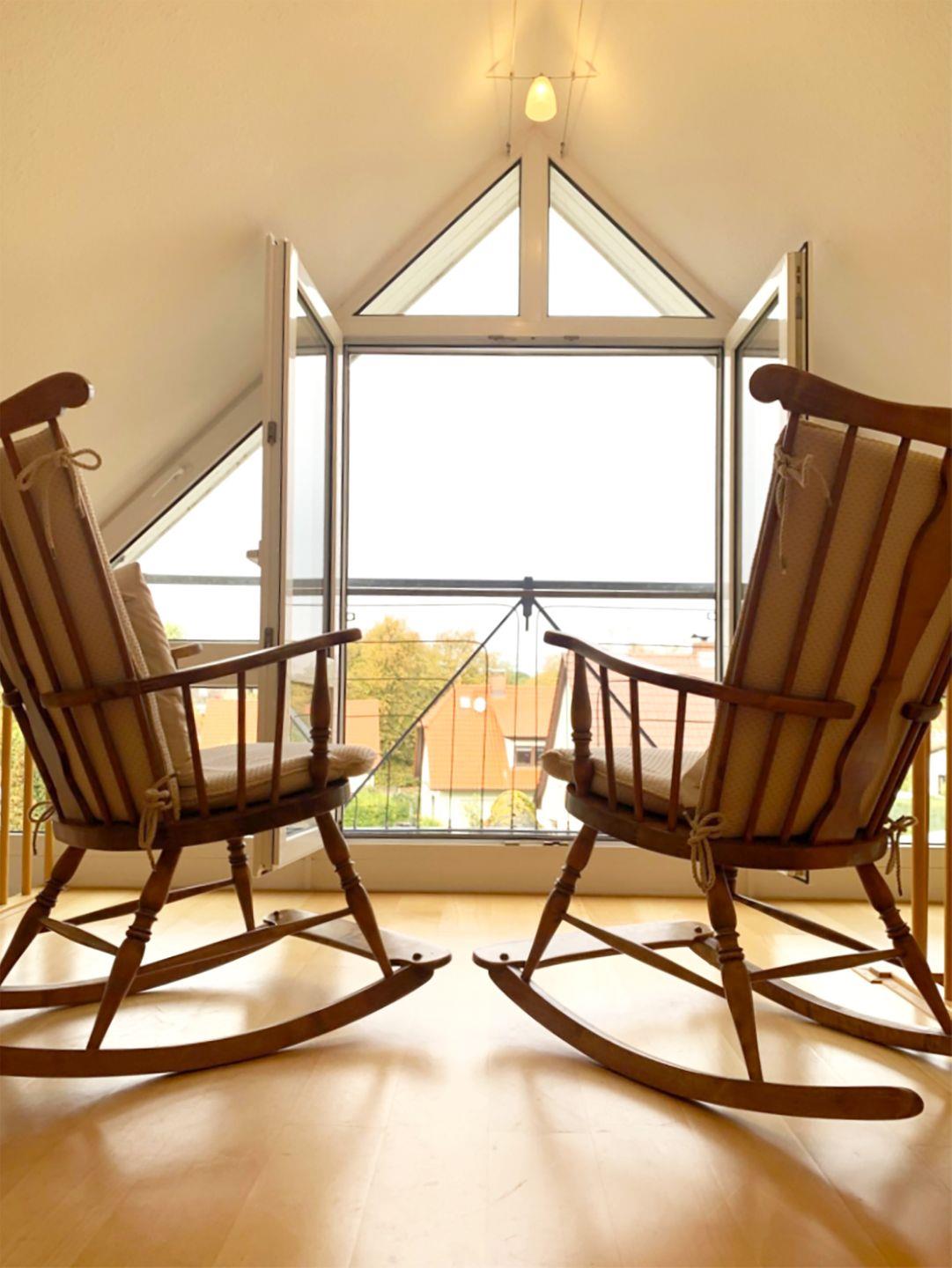 Im Dachgeschoss befindet sich eine Galerie mit Sofa und zwei Schaukelstühlen, ideal zum Entspannen. WLAN und ein Parkplatz sind ebenfalls vorhanden. Haustiere sind in dieser Unterkunft gestattet.