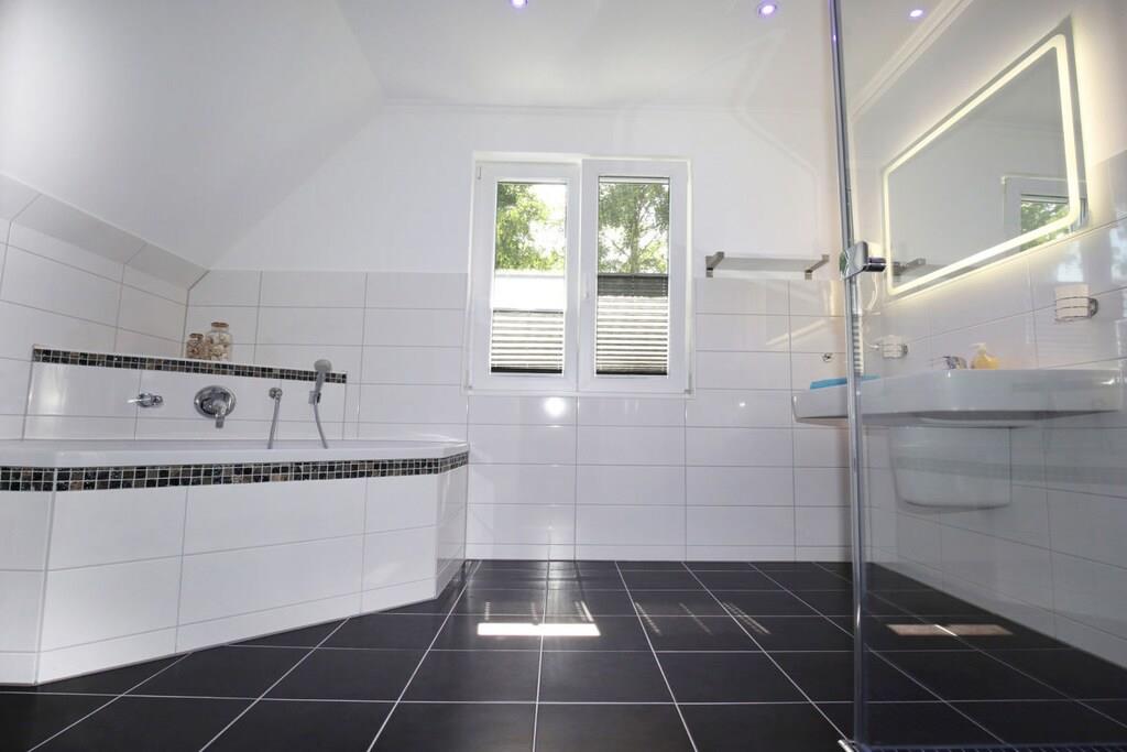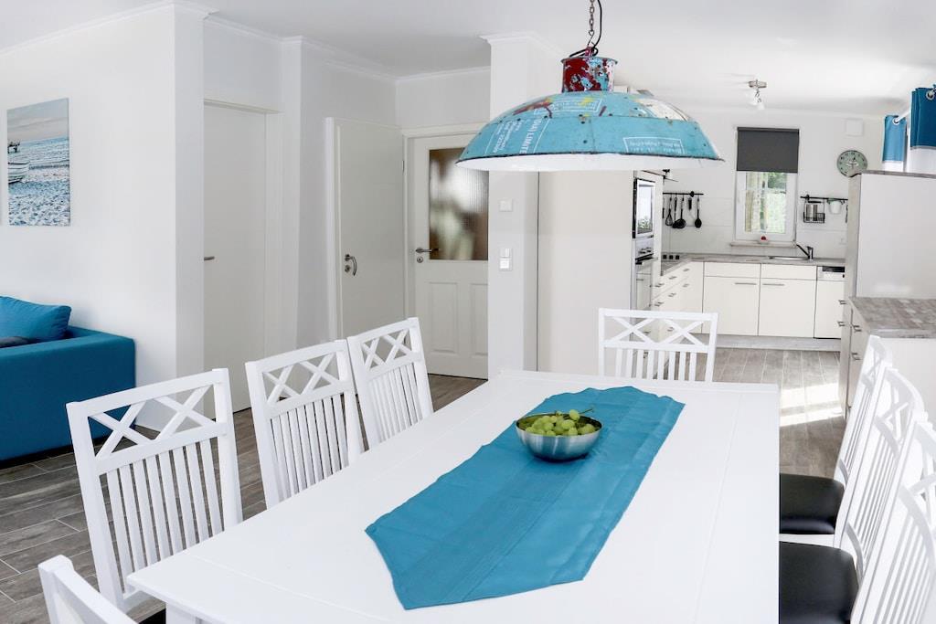 Das behagliche, 2015 erbaute Reetdachhaus mit 4 Schlafzimmer (8+ 1 Personen) mit 140qm Wohnfläche, verfügt über einen einladend und großzügig gestalteten Wohn-/Essbereich mit offener Küche, über die Sie auf die Terrasse wie auch in den Garten gelangen. In ca. 200m Entfernung befindet sich ein großer Kinderspielplatz. Das Ferienhaus liegt nur 650m vom Ostseestrand und ca. 15 Gehminuten vom Stadtzentrum entfernt.