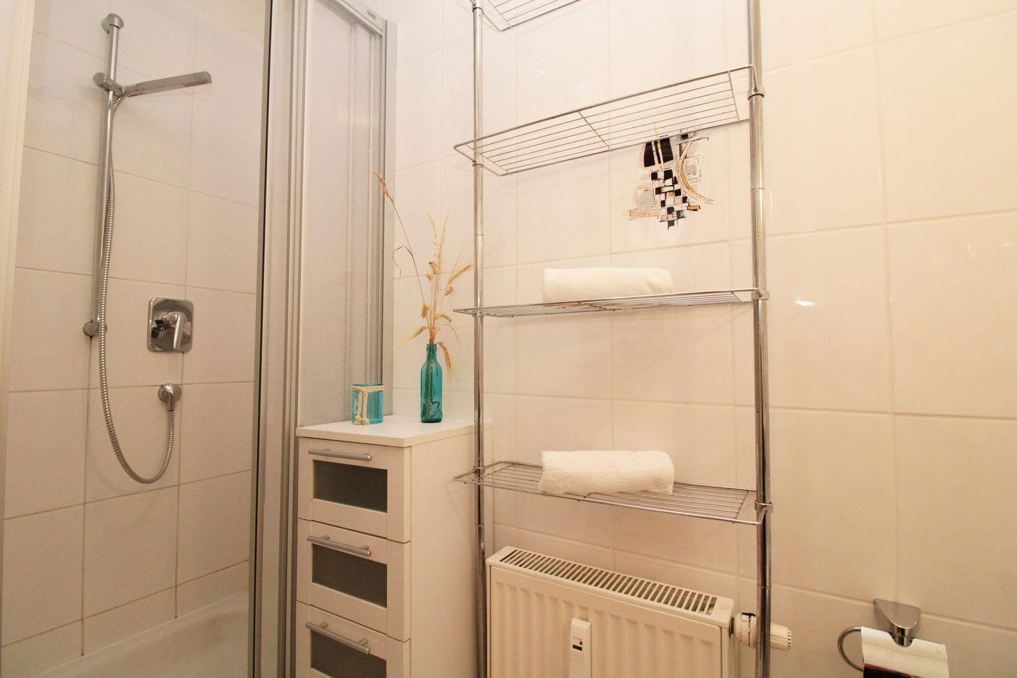 Ihre Schuhe und Jacken können Sie an der Garderobe mit Kommode und Spiegel im Flur der Wohnung unterbringen.