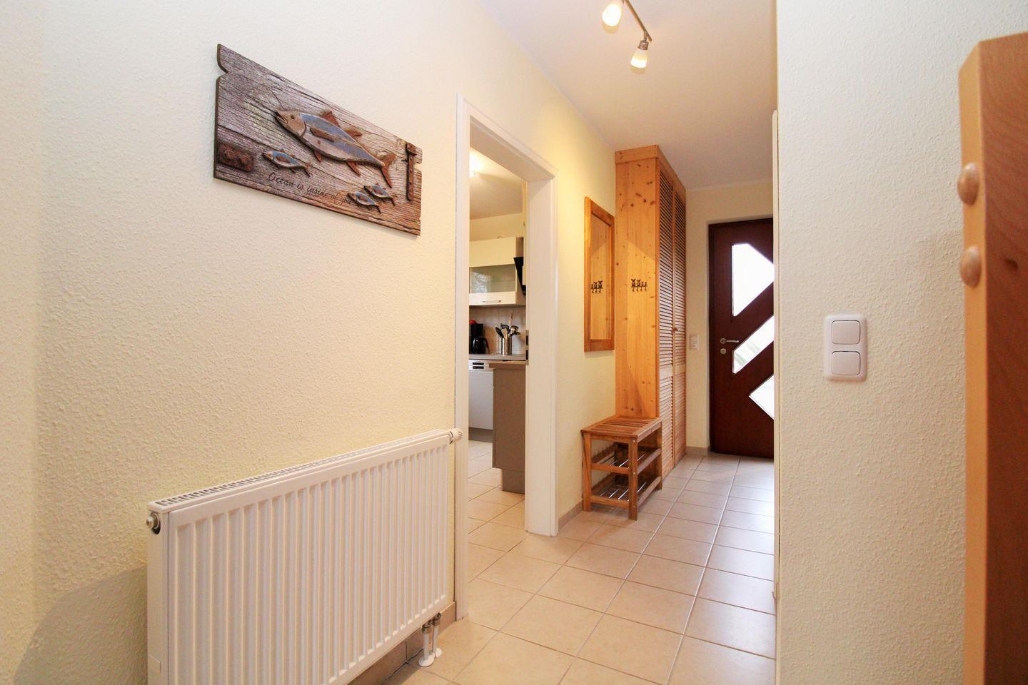 Vom geräumigen Flur mit Garderobe, Spiegel, Sitzbank und Schuhregal erreichen Sie bequem alle Räume Ihrer Ferienwohnung.