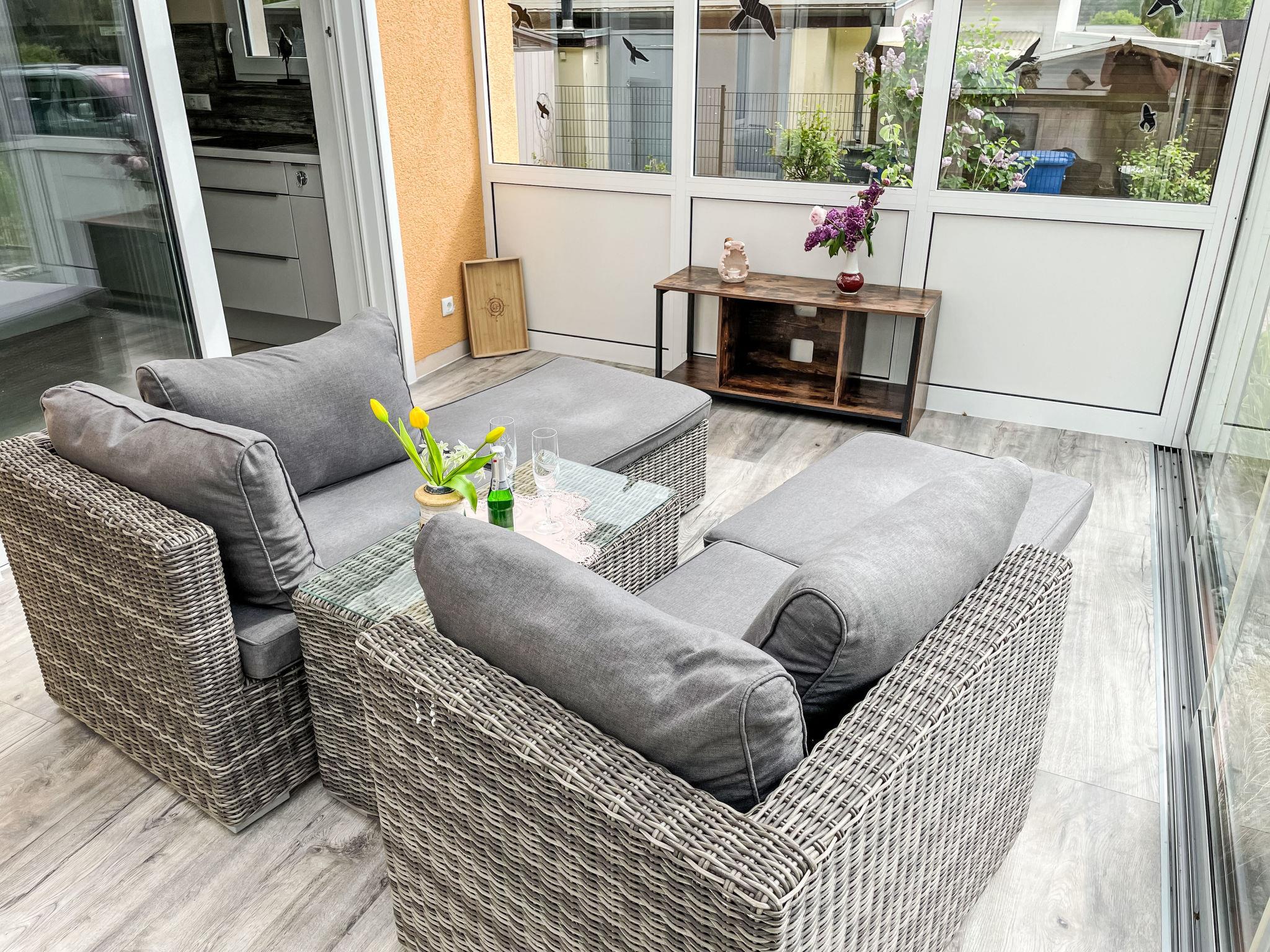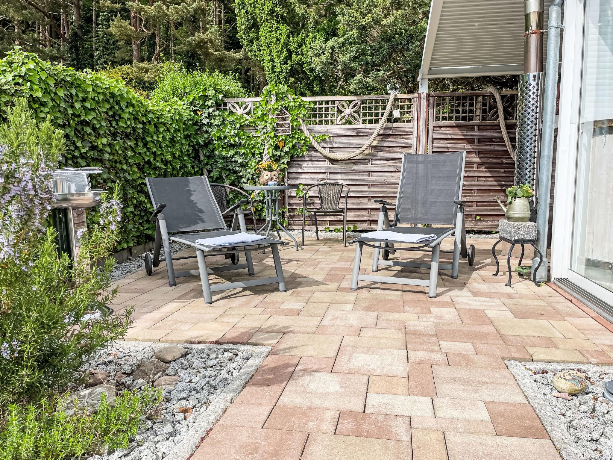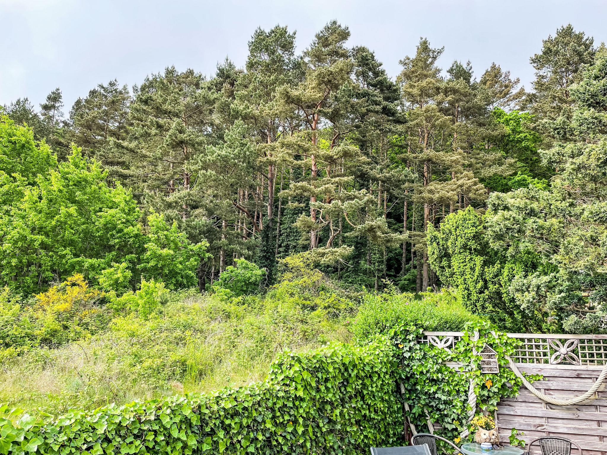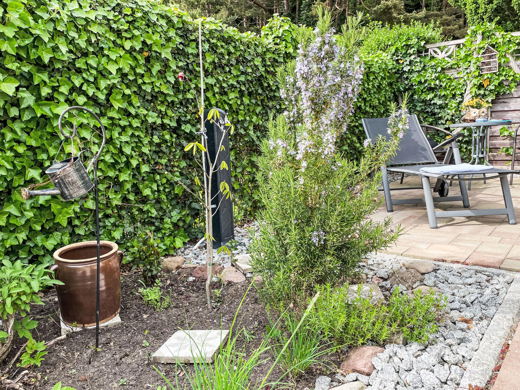 Gemütlicher moderner Bungalow mit Terrasse und Waldblick, nahe Sellin und Ostsee, ideal für erholsame Tage zu zweit.
