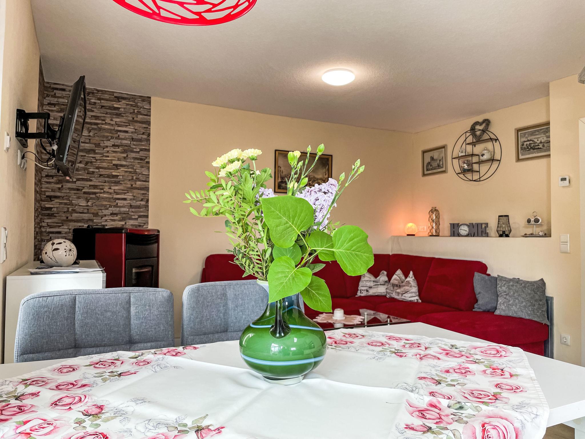 "Ferienhaus Nr. 67", 2-Zimmer-Bungalow 45 m2, im Erdgeschoss. Modern und gemütlich eingerichtet: Wohn-/Esszimmer mit Schwedenofen und Sat-TV. Ausgang zur Terrasse. 1 Zimmer mit 1 Doppelbett (180 cm, Länge 200 cm). Offene Küche (Backofen, Geschirrspüler, 4 Glaskeramikplatten, Toaster, Wasserkocher, Mikrowelle, elektrische Kaffeemaschine). Dusche/WC. G-Heizung. Terrasse 15 m2. Terrassenmöbel, Gartengrill, Liegestühle (2), Wintergarten. Schöne Sicht auf den Wald. Zur Verfügung: Waschmaschine, Fliegengitter, Haartrockner, Holz (extra). Internet (WLAN, gratis). Parkplatz beim Haus. Bitte beachten: Nichtraucher-Haus. Rauchmelder, Feuerlöscher. 10566