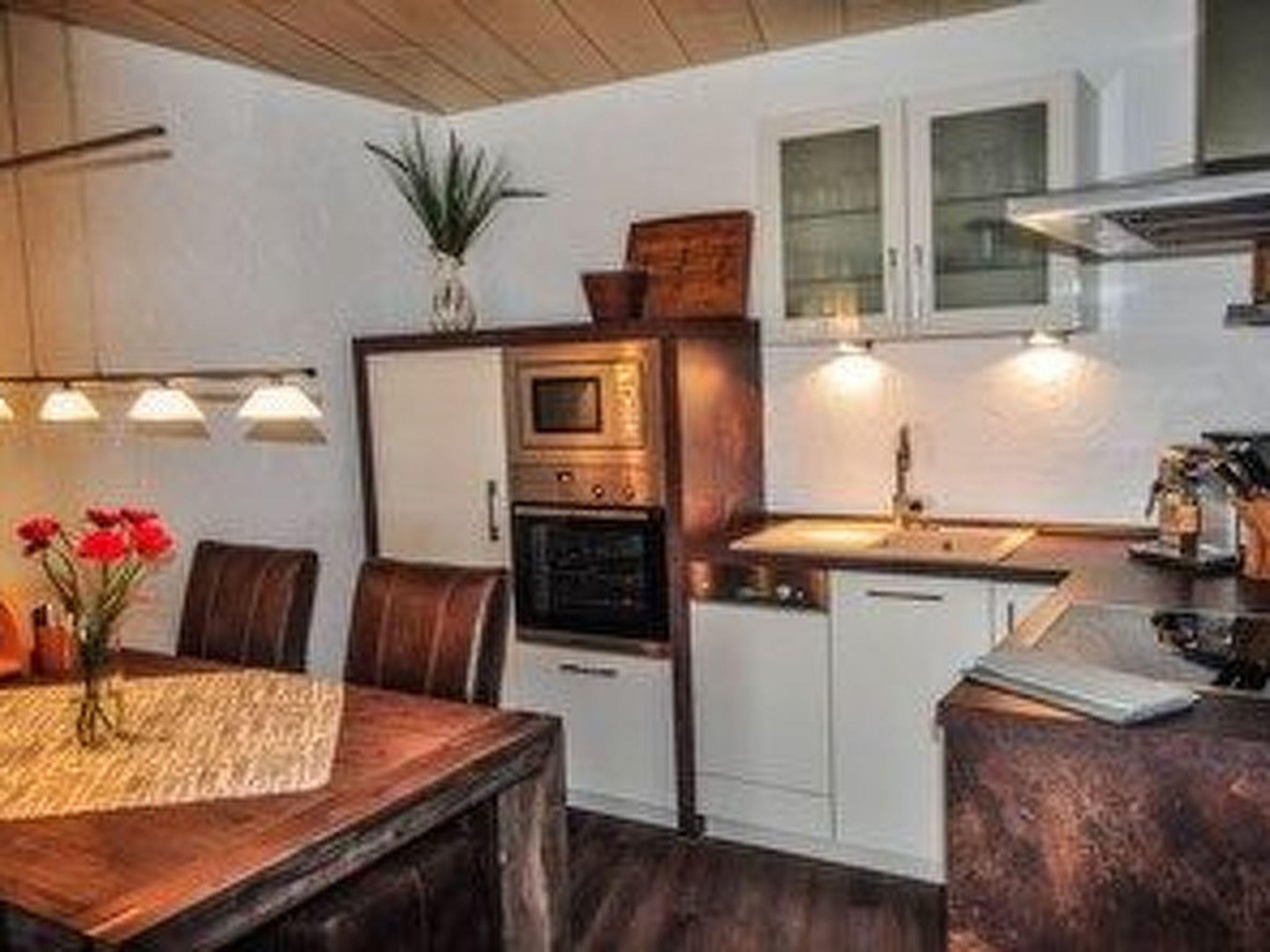 Es handelt sich hier um ein eingeschossiges Gebäude mit Flachdach (Gründach). Die Fassade ist geklinkert und das Haus hat Kunststoffenster und elektrische Rolläden.Die Wohnung ist modern und gemütlich eingerichtet und läßt keine Wünsche offen:Alle Fenster haben innen Plisses. Die Fußböden wurden mit Vinylan bzw. Fliesen ausgelegt. Die Wände haben einen rustikalen Strukturputz bzw. in den Schlafzimmern Vliestapete und die Decken sind mit Holzpaneele verkleidet. Das Bad hat Fußbodenheizung, ist mit hochwertiger Keramik und einer Glasdusche ausgestattet. Die Wohnung besitzt eine moderne und komplett ausgestattete Einbauküche mit Ceranfeld, Abzugshaube, Backofen, Mikrowelle, Geschirrspüler, Kühlschrank mit Gefrierfach, Kaffeevollautomat ... Ebenfalls gibt es einen Kaminofen. Im Wohn- und Schlafzimmer steht Ihnen SAT-TV zur Verfügung. Ebenfalls ist ein WLAN-Anschluss vorhanden. Ein Pkw-Stellplatz ist auf dem Grundstück vorhanden.Die Sauna mit Ruheraum im Ferienhaus lädt zum relaxen ein und kann natürlich mitbenutzt werden.Gut erzogene und liebe Hunde sind auf Anfrage möglich!