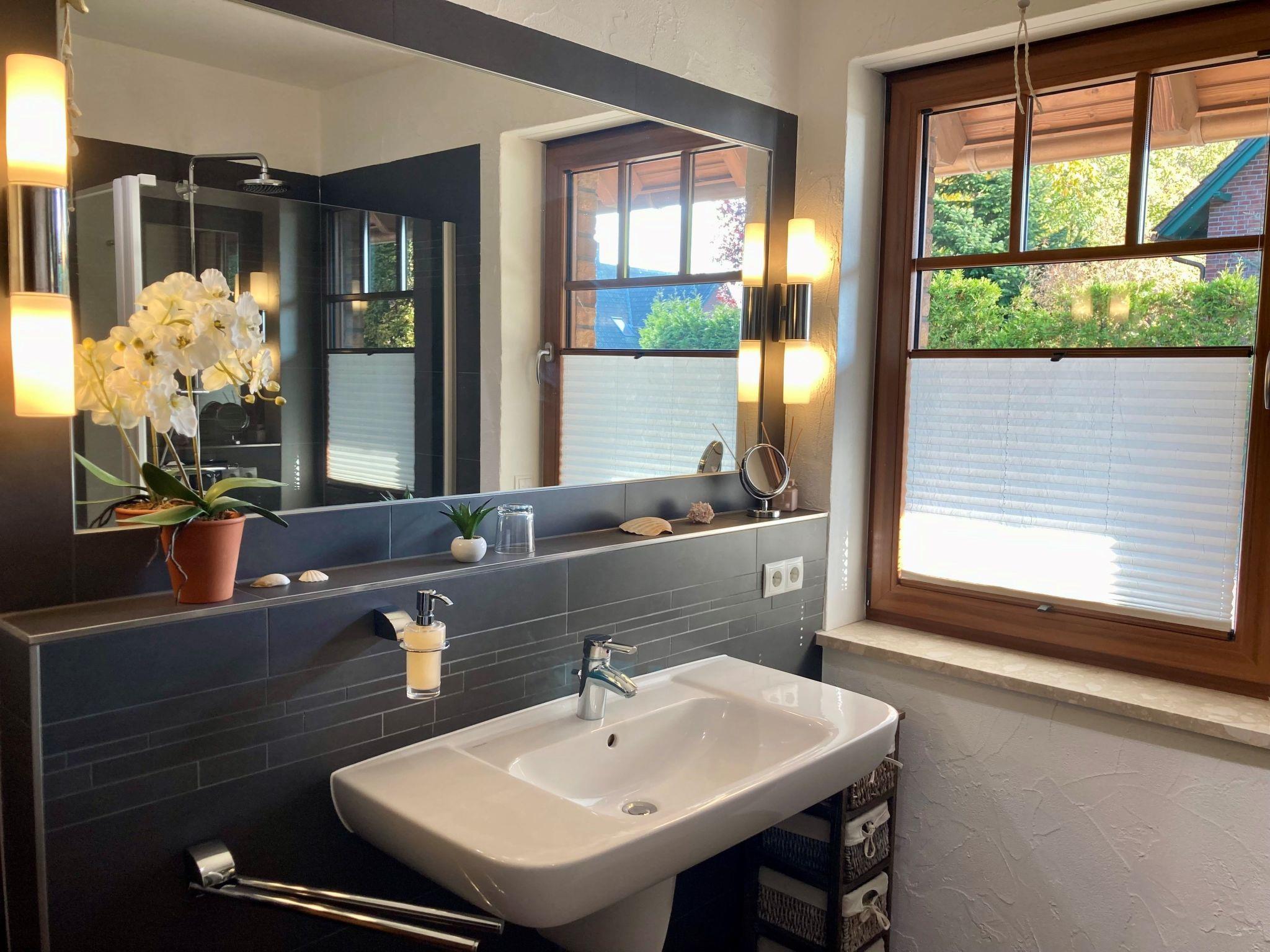 Die Wohnungen sind modern und gemütlich eingerichtet und lassen keine Wünsche offen:Alle Fenster sind außen mit elektrischen Rolläden ausgestattet und haben innen Plisses. Die Fußböden wurden mit Vinylan ausgelegt. Die Wände erhielten einen rustikalen Strukturputz bzw. in den Schlafzimmern und Fluren Vliestapete und die Decken wurden teilweise mit Holzpaneele verkleidet. Alle Bäder haben Fußbodenheizung, sind mit hochwertiger Keramik und einer Glasdusche ausgestattet. Jede Wohnung hat eine moderne und komplett ausgestattete Einbauküche und einen Kaminofen. In den Wohn- und Schlafzimmern steht Ihnen SAT-TV zur Verfügung. Ebenfalls ist ein WLAN-Anschluss vorhanden.