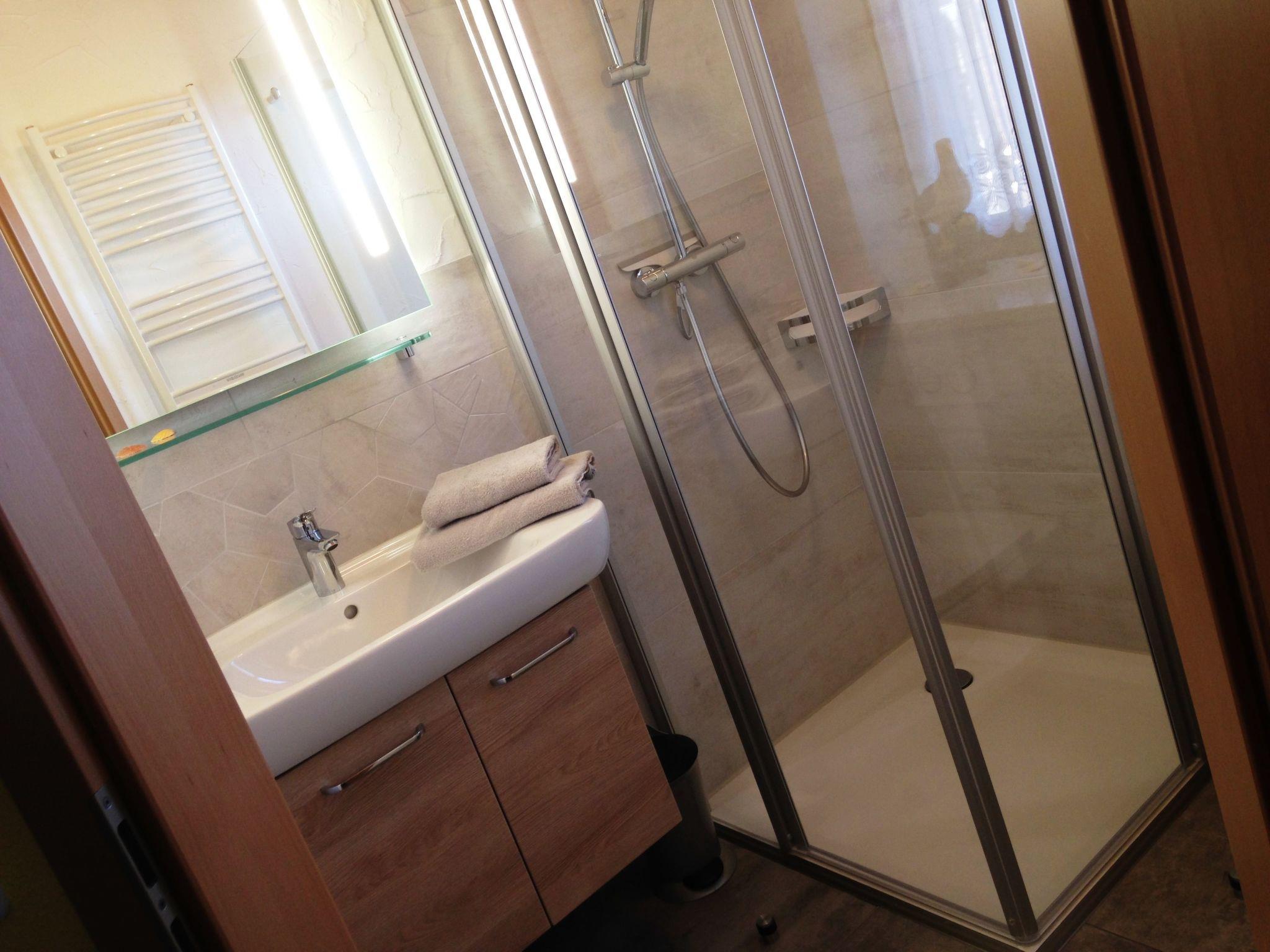 Die umfassende Renovierung dieser Wohnung wurde im April 2018 abgeschlossen.Im OG wurde der Teppichboden durch Vinylboden ersetzt. Es wurde ebenfalls ein Stukturputz aufgebracht und die Holztäfelung erneuert. Das Bad ist komplett umgestaltet, neu gefliest, mit Strukturputz versehen und mit neuer Keramik ausgestattet. Es wurde eine neue Einbauküche montiert und alles malermäßig aufgehübscht...Nichtraucher-Maisonettewohnung im Einfamilienhaus, separater Eingang, 25 m zum Selliner See, elektrische RollädenGröße ca. 65 m² für 1 - 2 Erw. + 2 Kinder + max. 1 Kind (1 - 3 Jahre) im Kinderreisebett bestehend aus: Küche, Bad, Gaderobe im Erdgeschoss, Wohnzimmer, 2 Schlafzimmer, Balkon im ObergeschossKüche: neue Einbauküche mit Ceranfeld (Induktion), Abzugshaube, Mini-Backofen, Keramikspüle, Geschirrspüler, großer Kühlschrank mit Gefrierfach, Kaffeeautomat, Toaster, Wasserkocher, Geschirr, Esstisch für 4 Personen, Radio/CD, Kinderstuhl auf AnfrageWohnzimmer: große gemütliche Eckcouch, Fernseher mit SAT-Anschluß, Anrichte, Eckvitrine 2 Schlafzimmer: 1 x im OG mit Doppelbett (180 x 200), Nachtschränke, 3türiger Kleiderschrank; 1 x im Spitzboden (volle Stehhöhe) mit 2 Einzelbetten (90 x 200), Nachschränken, Anrichte, Verdunkelungsrollos, Kinderreisebett auf AnfrageBad: mit Eckdusche (90 x 90), Waschtisch, WC, Handtuchheizer, Fußbodenheizung, Fön, SpiegelFlur: Gaderobe, Spiegel Balkon: Tisch mit 4 Stühlen incl. Auflagen, Elektro-Grill Bügeleisen/Bügelbrett zur gemeinschaftlichen Nutzung Waschmaschine/Trockner im benachbarten Ferienhaus über Münzautomat nutzbar 1 Pkw-Stellplatz direkt am Haus Die Sauna mit Ruheraum im Ferienhaus kann selbstverständlich mitgenutzt werden. Haustiere auf Anfrage!
