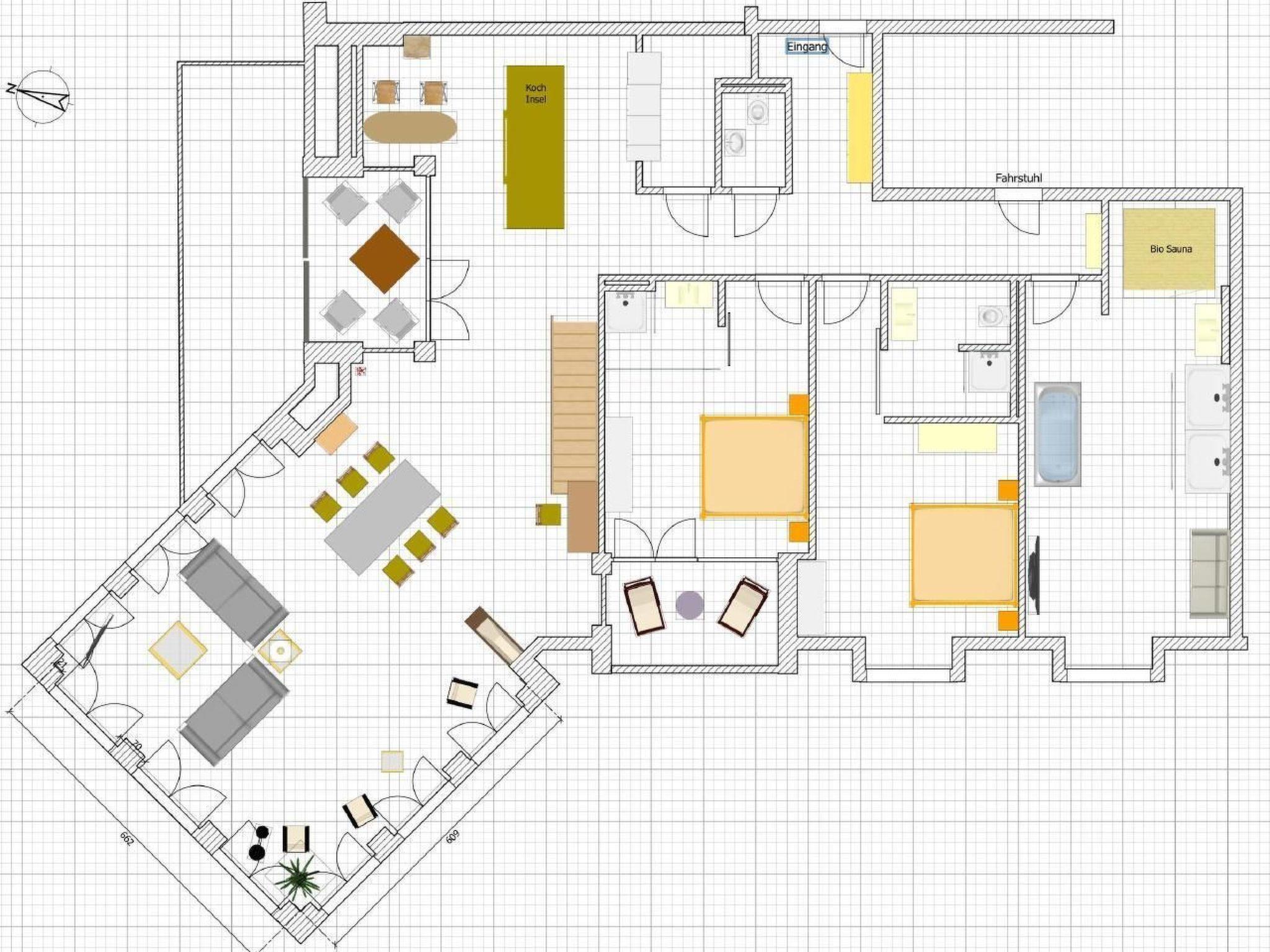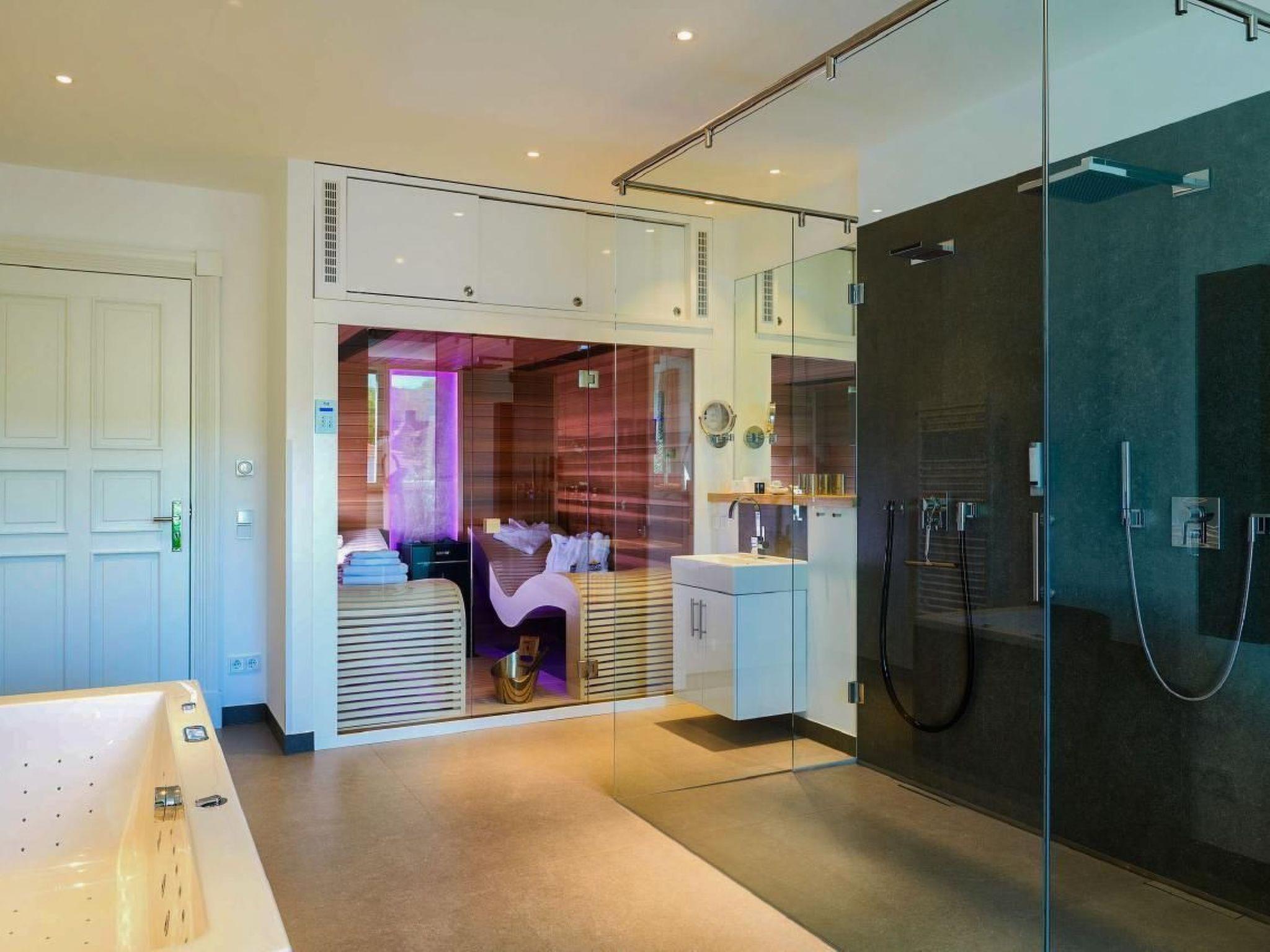 Im Inneren erwartet Sie eine luxuriöse Ausstattung, die keine Wünsche offenlässt. Die Wohlfühloase erstreckt sich über mehrere Zimmer, einschließlich eines 26 m³ großen SPA Raumes, der mit einer Doppelbettcouch für den 5. und 6. Gast ausgestattet ist. Neben einer state-of-the-art Warendorf Kochinsel mit BORA Abzug in der Küche, bietet das Badezimmer einen Whirlpool und eine Sauna für entspannende Momente. Die hochwertige Einrichtung sorgt für ein einmaliges Wohngefühl.