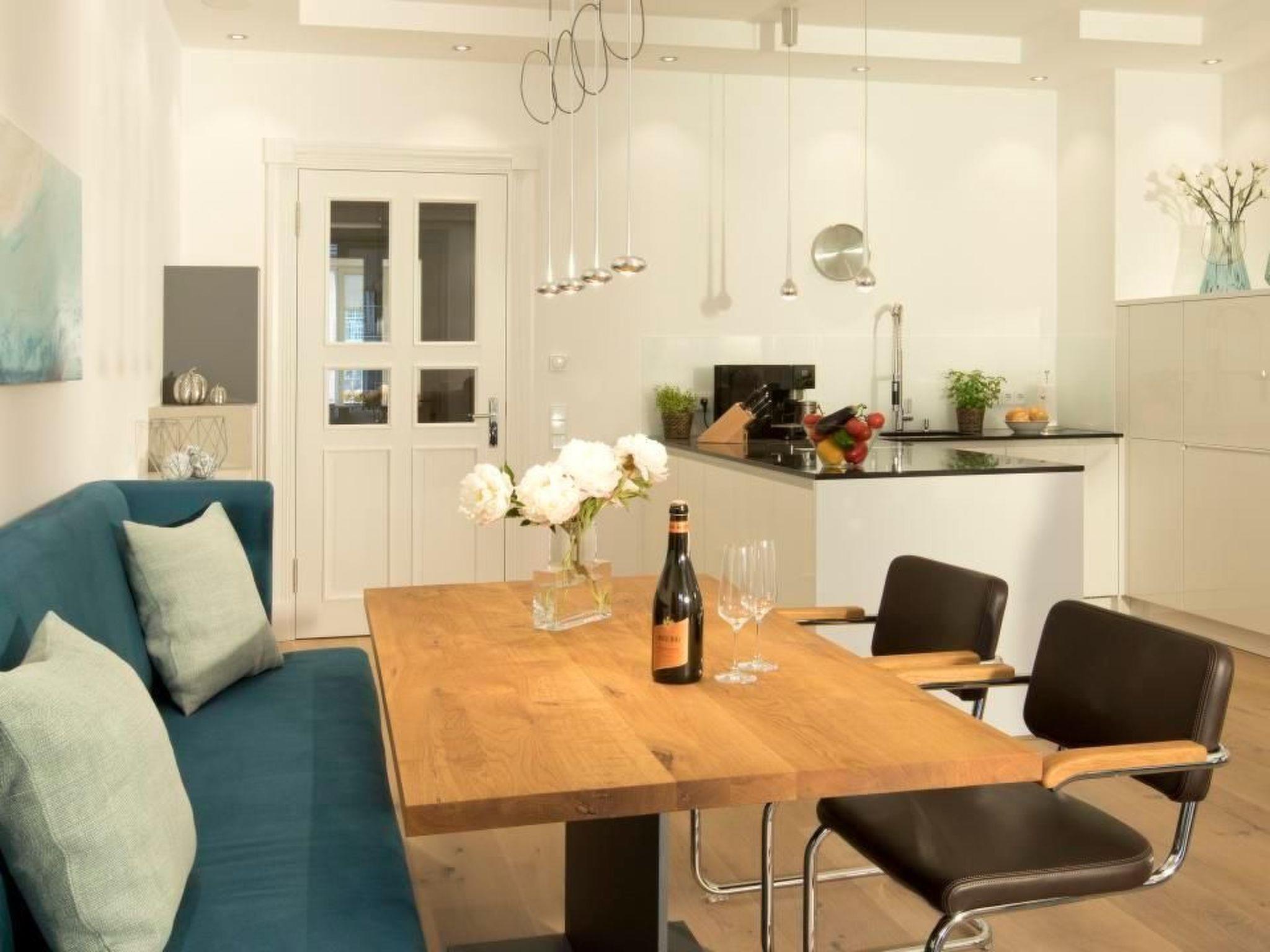 Die Küche mit Blick ins Wohnzimmer ist vollausgestattet und lädt zum Kochen im Urlaub auf Rügen ein. Angefangen beim großen Kühlschrank, Gefrierschrank, einem 4-Platten Induktionskochfeld, dem Miele Kaffeevollautomaten und vielem mehr was das Küchenherz begehrt. Der Esstisch mit zwei Stühlen und einer Sitzbank ist optimal für das Abendessen oder einen schönen Spielabend mit der Familie.