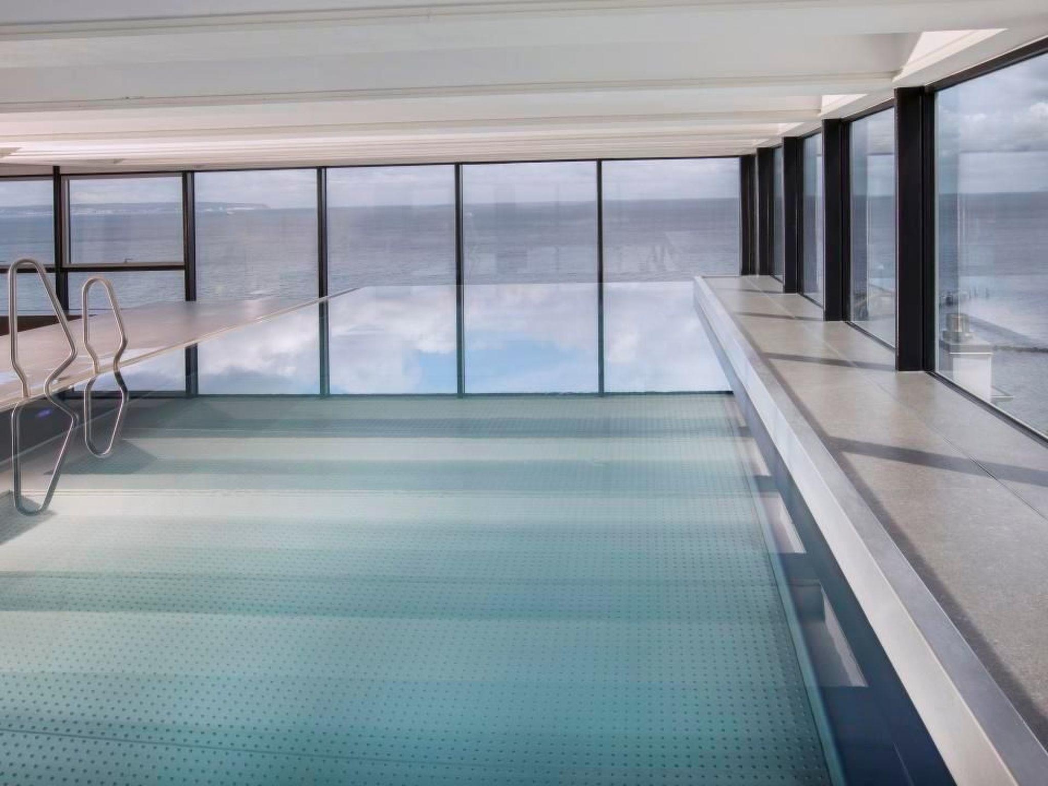 Auf 84m² ist unsere großzügige Entspannungsoase entstanden mit Indoor-Infinity Pool und Saunalandschaft. Während dem entspannen im Wellnessbereich kann man die weiten des Meeres genießen mit Blick bis zum Kreidefelsen.