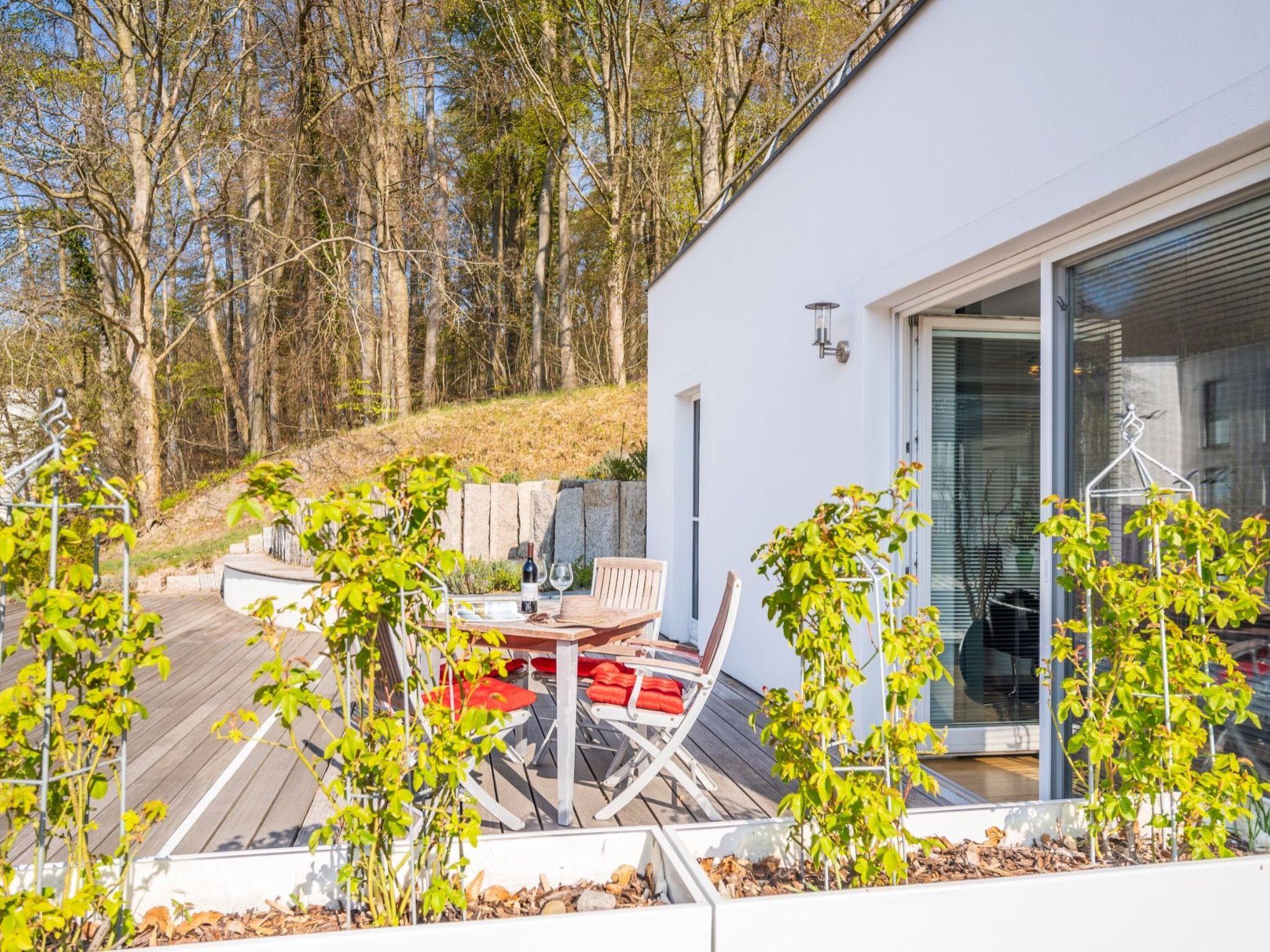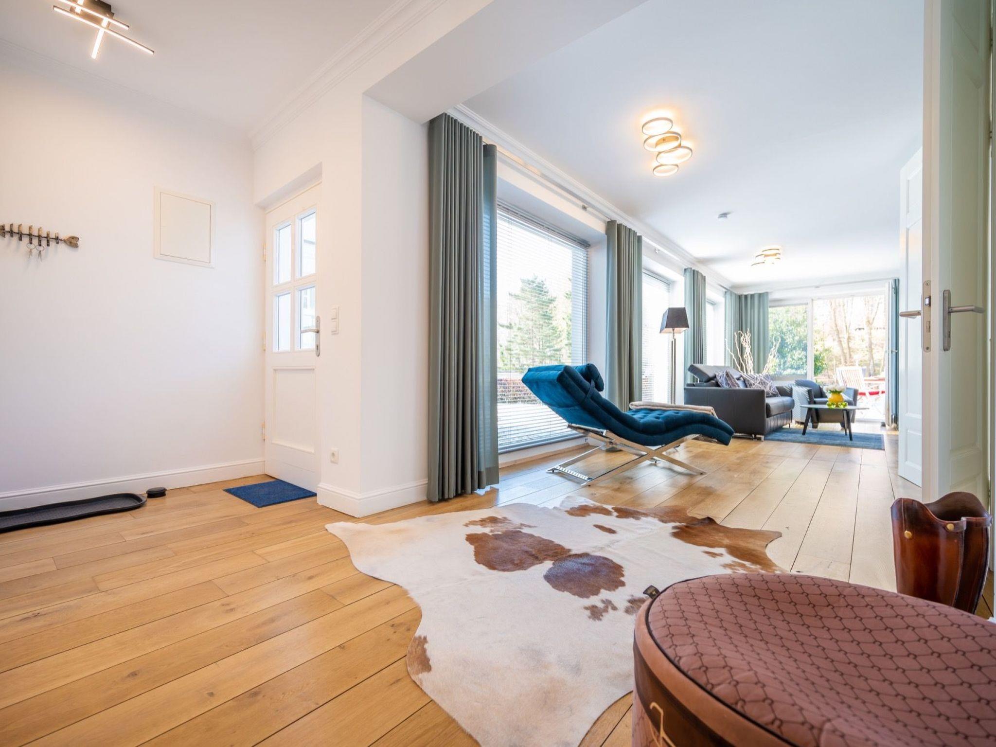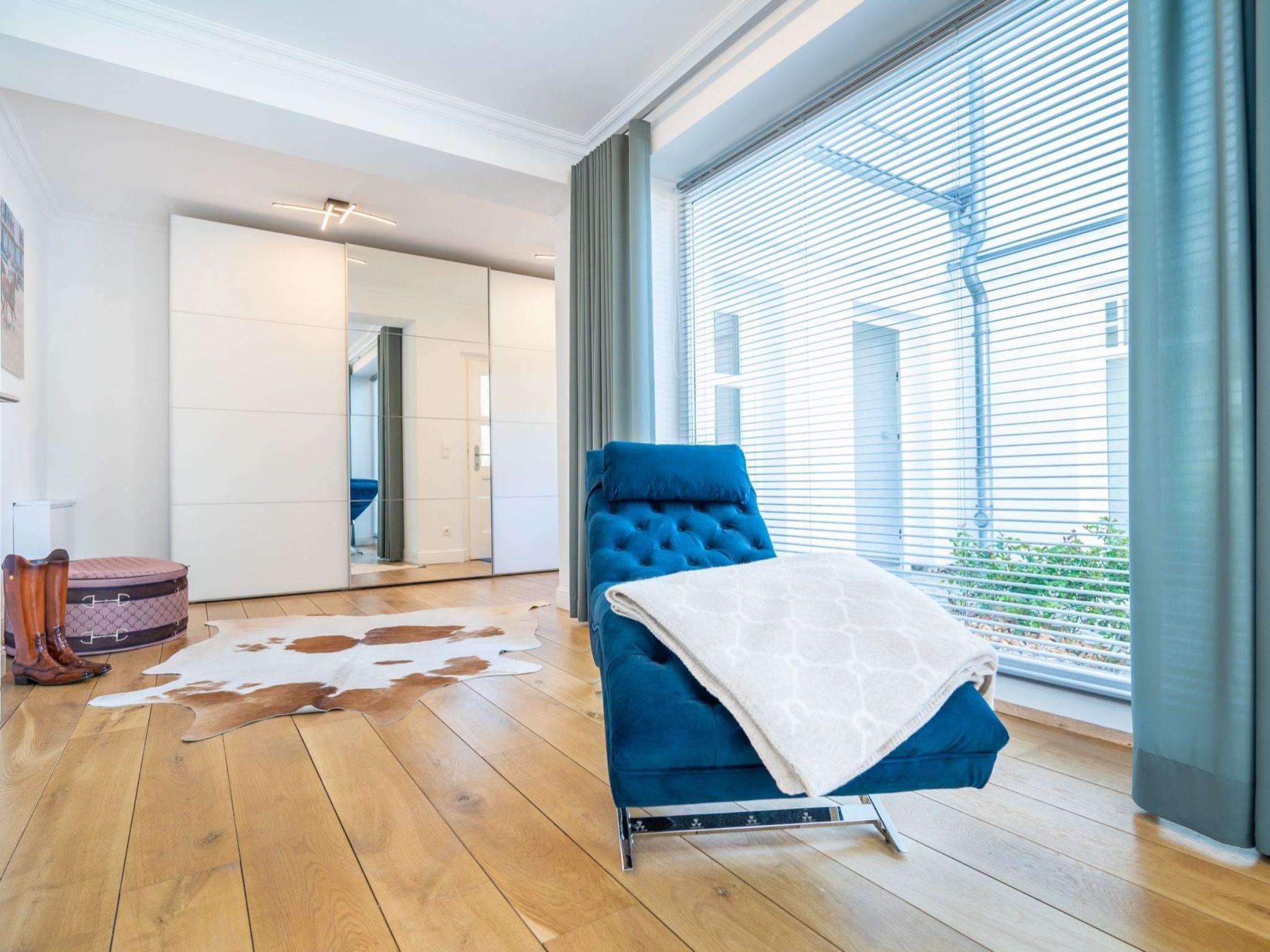Draußen lädt die windgeschützte Südterrasse zum Entspannen ein. Zusätzlich steht eine Gemeinschaftsterrasse mit Außenpool sowie ein Wellnessbereich zur Verfügung. Direkt vor der Tür beginnt das Hochufer mit Blick auf die Ostsee und die berühmte Seebrücke. Zur Linken erstreckt sich das mystische Waldgebiet der Granitz – ideal für Spaziergänge und kleine Abenteuer mit Kindern. Einkaufsmöglichkeiten, Restaurants und Freizeitangebote sind in wenigen Minuten erreichbar. Die frische Meeresbrise macht den Aufenthalt zu einem rundum sinnlichen Erlebnis.