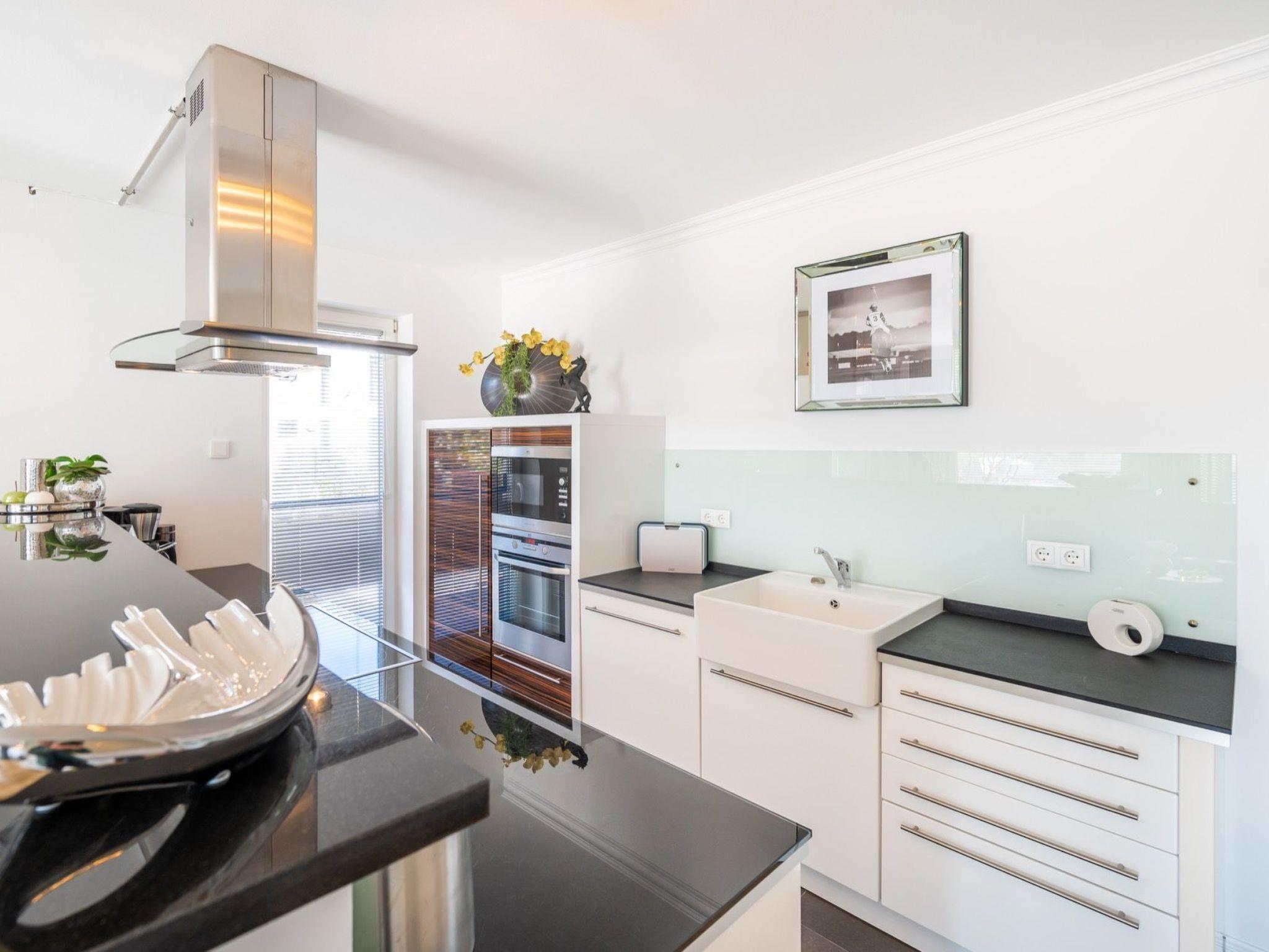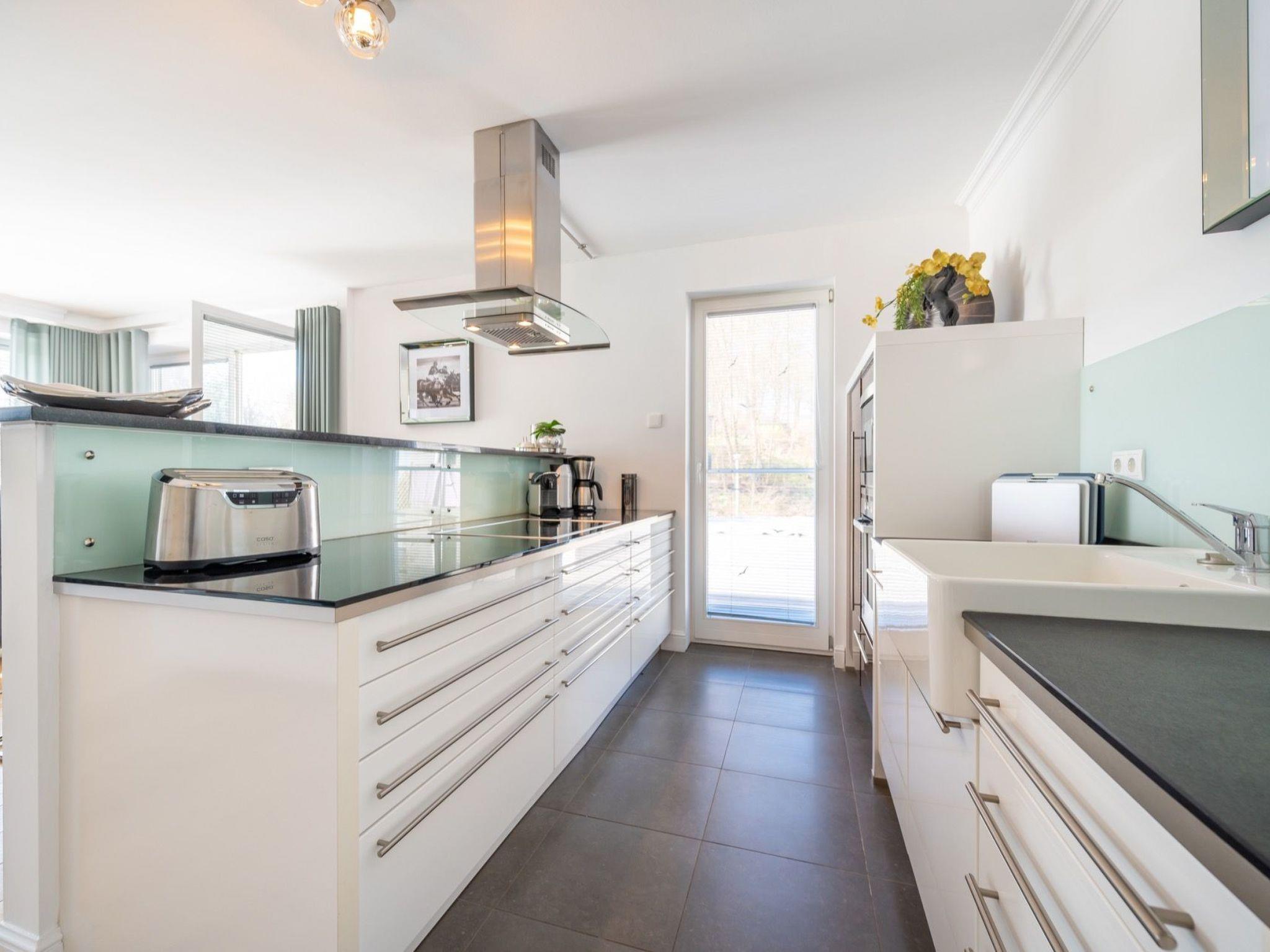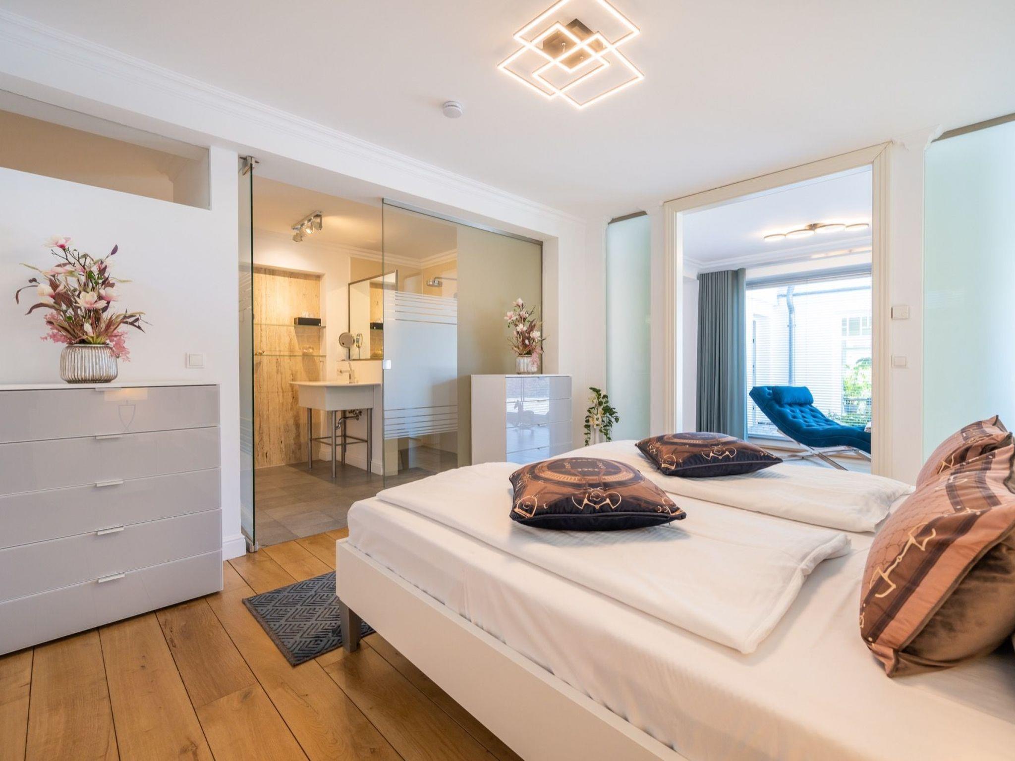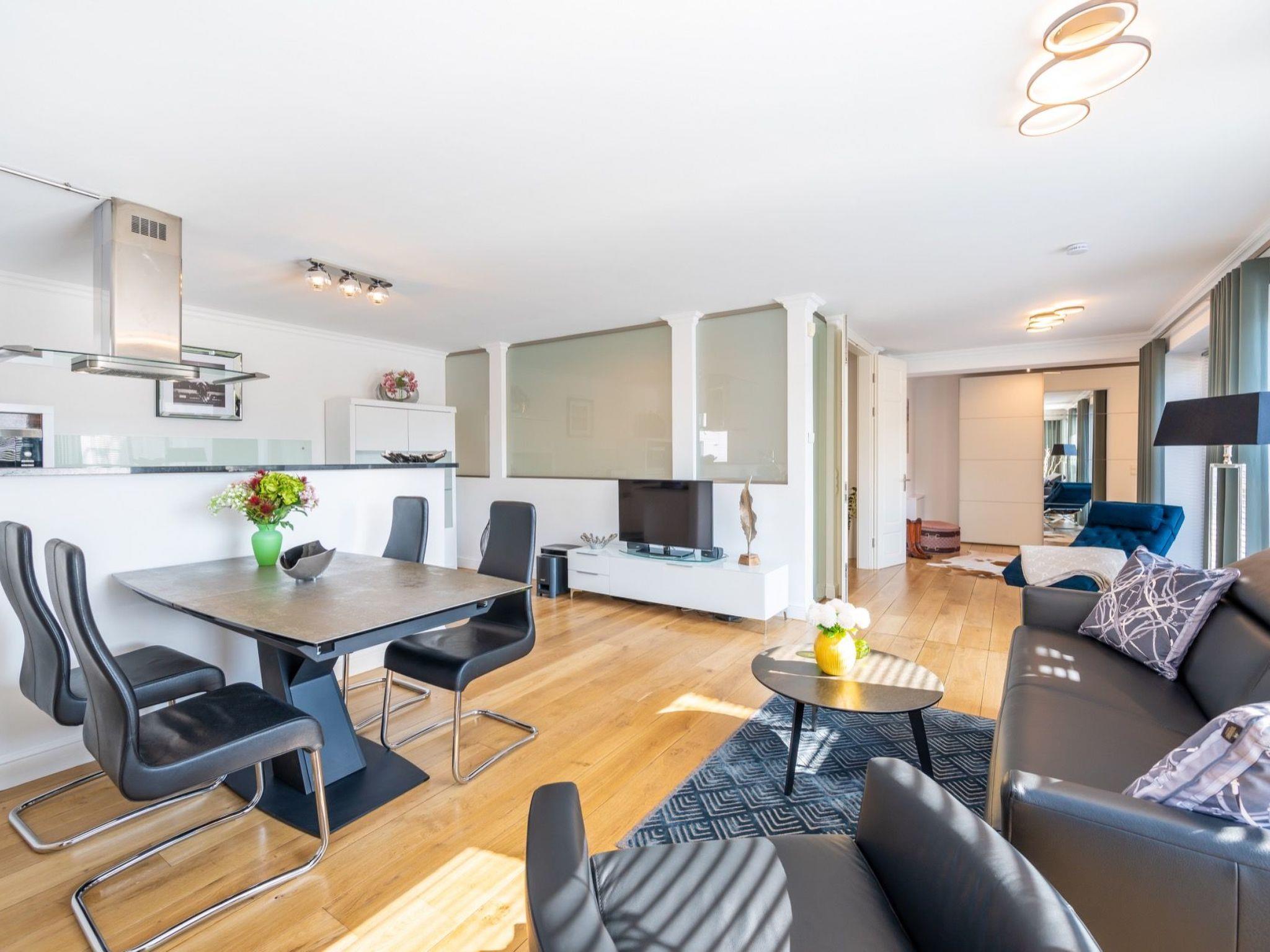 Draußen lädt die windgeschützte Südterrasse zum Entspannen ein. Zusätzlich steht eine Gemeinschaftsterrasse mit Außenpool sowie ein Wellnessbereich zur Verfügung. Direkt vor der Tür beginnt das Hochufer mit Blick auf die Ostsee und die berühmte Seebrücke. Zur Linken erstreckt sich das mystische Waldgebiet der Granitz – ideal für Spaziergänge und kleine Abenteuer mit Kindern. Einkaufsmöglichkeiten, Restaurants und Freizeitangebote sind in wenigen Minuten erreichbar. Die frische Meeresbrise macht den Aufenthalt zu einem rundum sinnlichen Erlebnis.