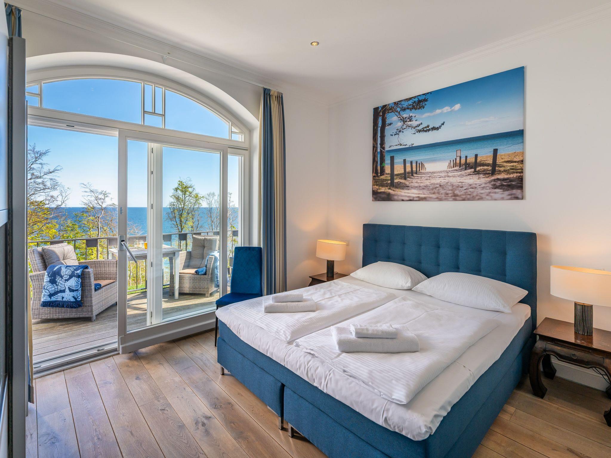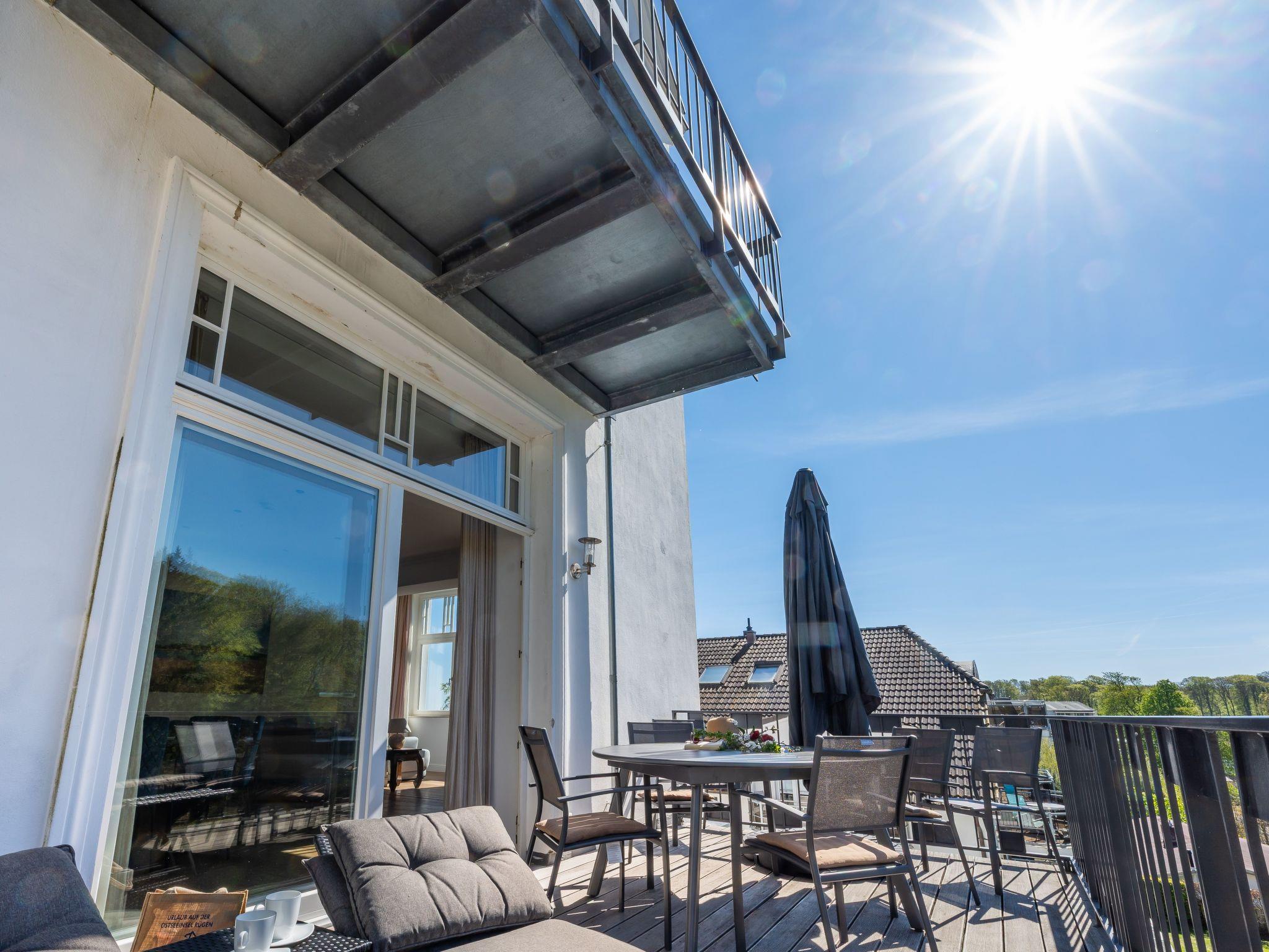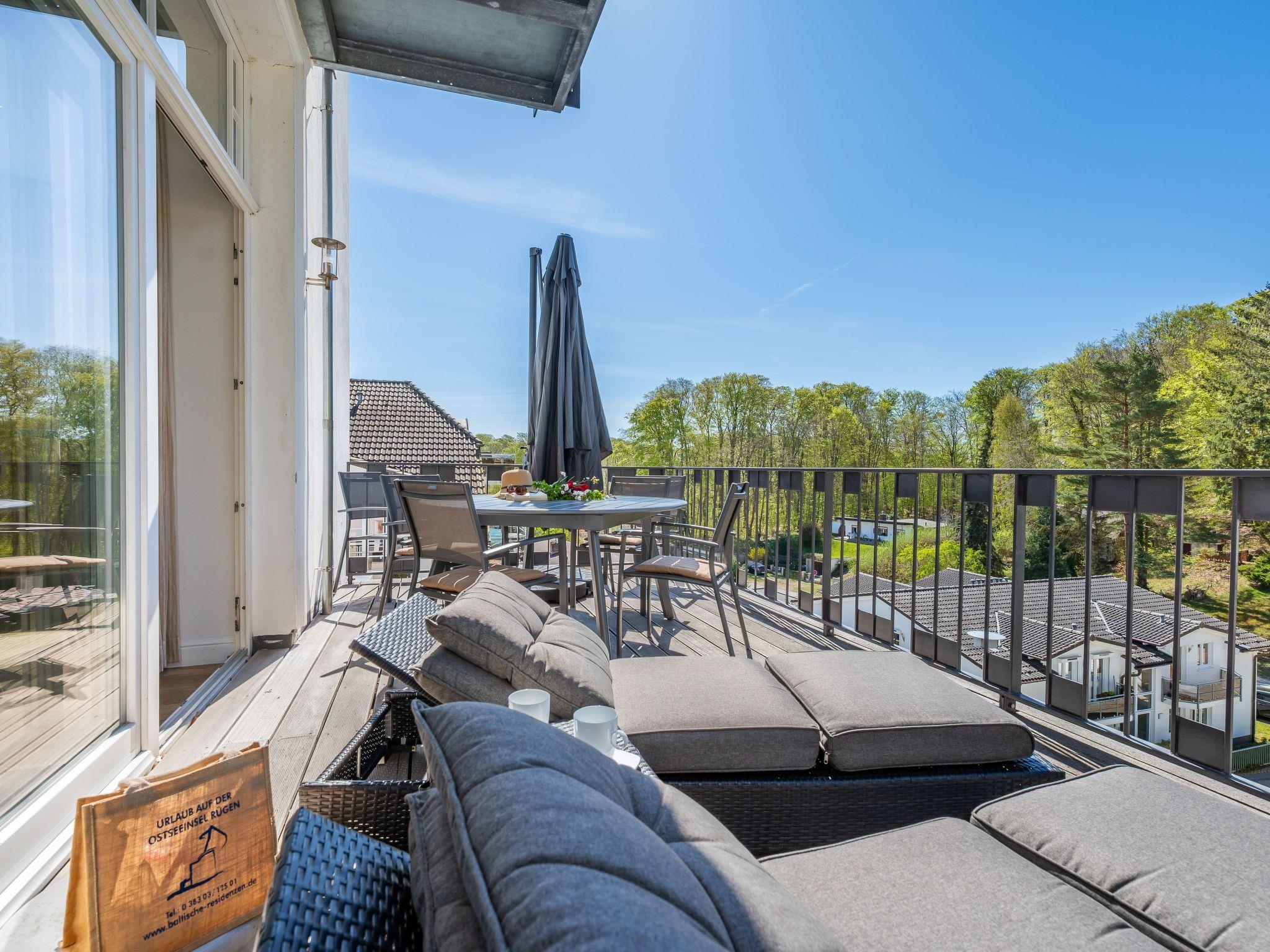 Der zweite Balkon bietet einen beeindruckenden Ausblick auf das Meer, die Seebrücke und bei guter Sicht sogar bis zum Kreidefelsen.