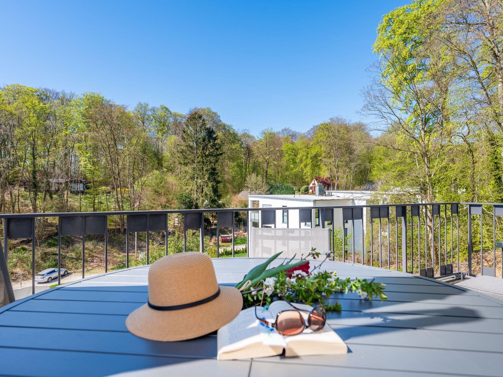 Eine wunderschöne Loggia mit Couch und Meerblick sowie ein großzügiger Balkon mit Blick ins Grüne laden zum Entspannen ein.