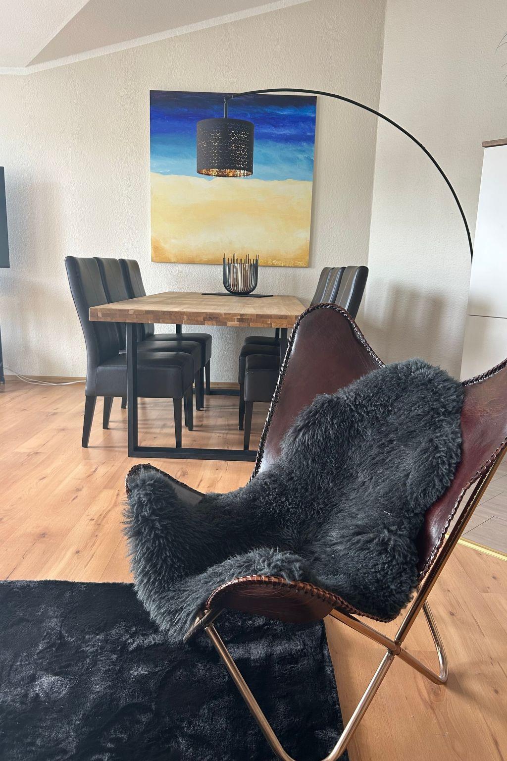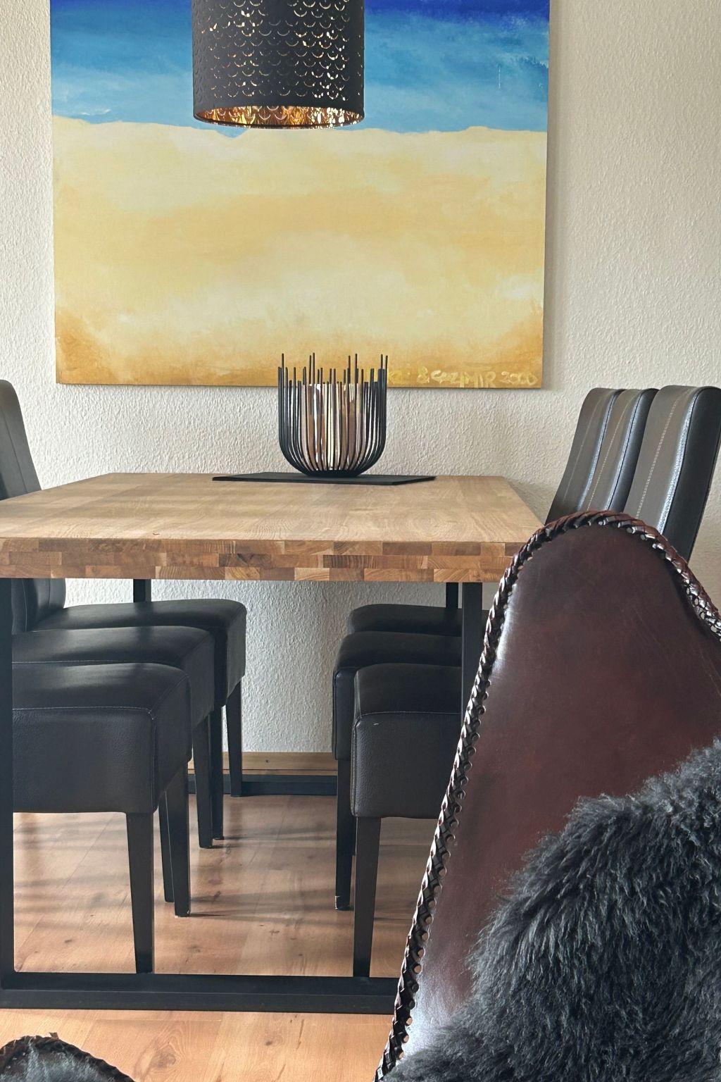 Sonnige Loggia mit einem großen Tisch und 6 Stühlen – perfekt für entspannte Momente im Freien