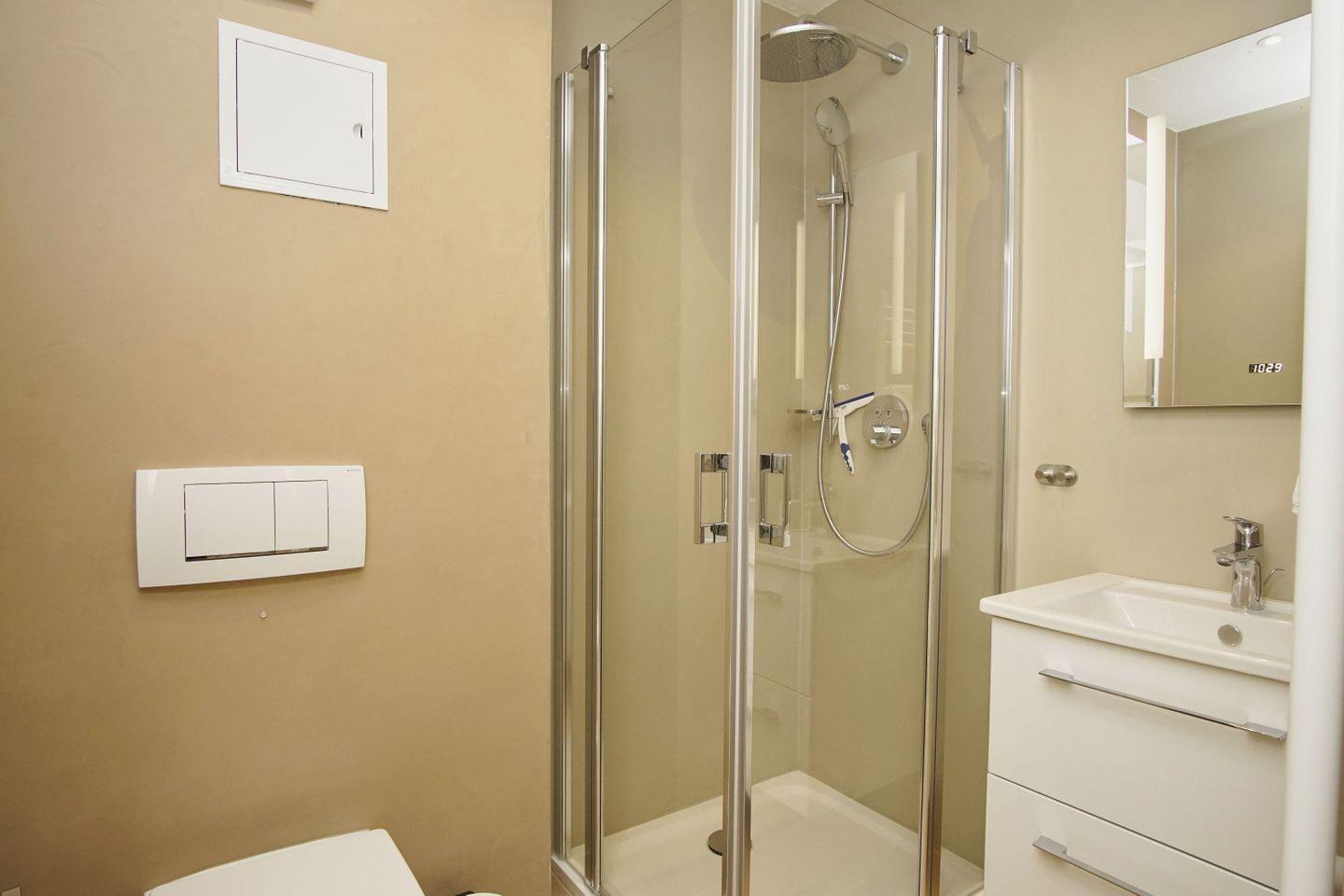 BAD // innen liegendes Bad, mit Dusche, Waschbecken und WC ++