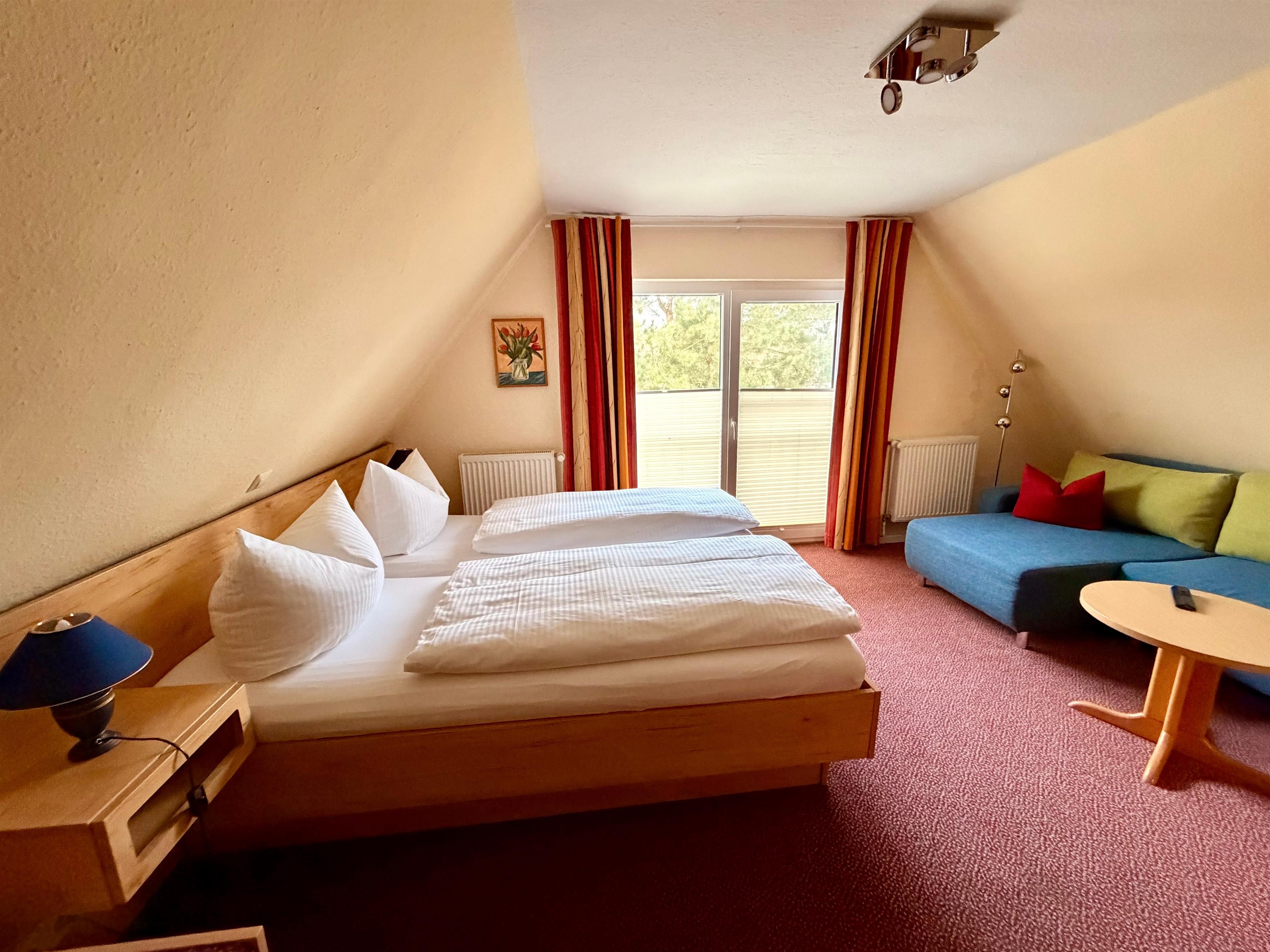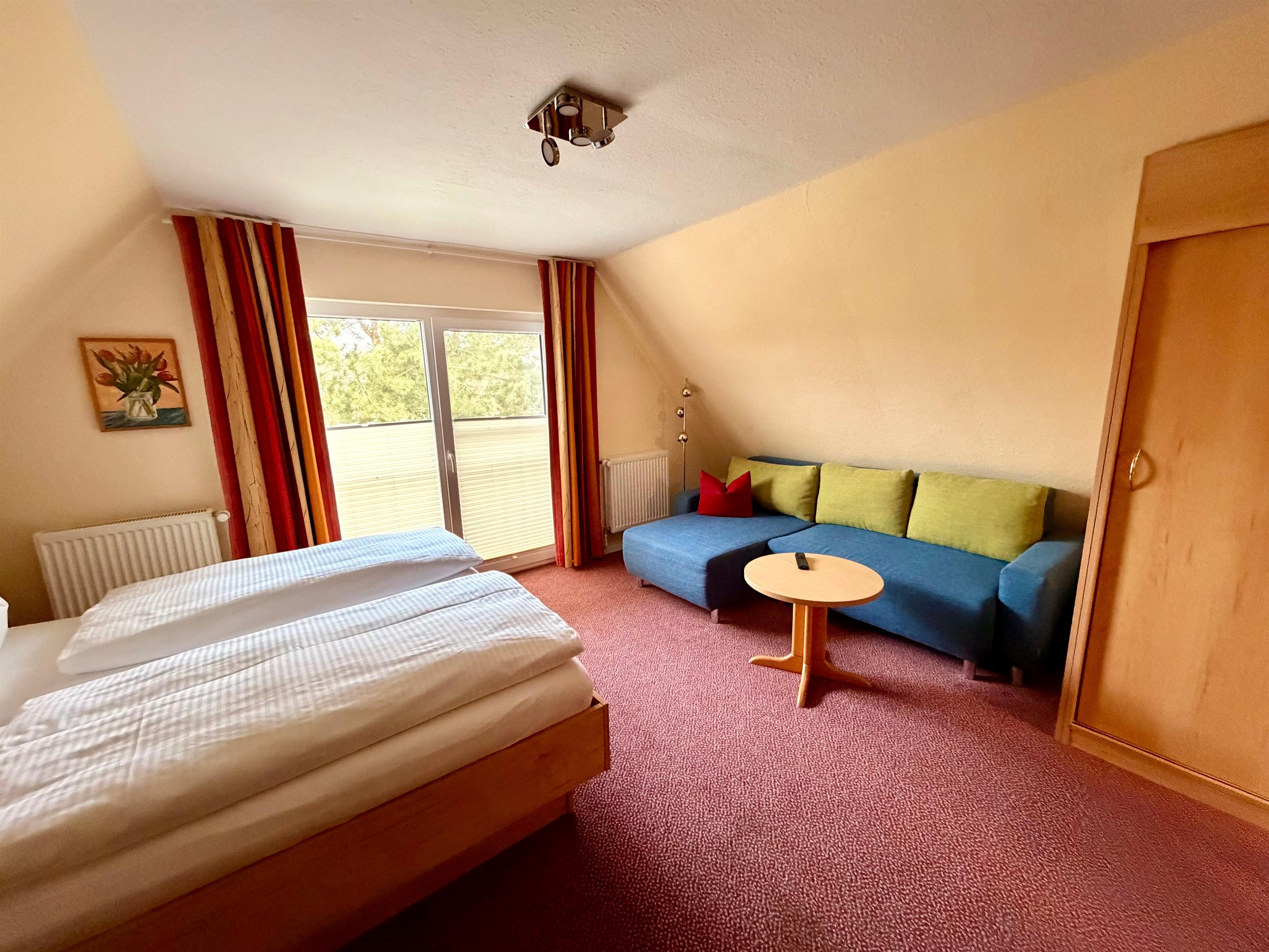 Die Ferienwohnung im Dachgeschoss bietet Platz für bis zu 3 Erwachsene.