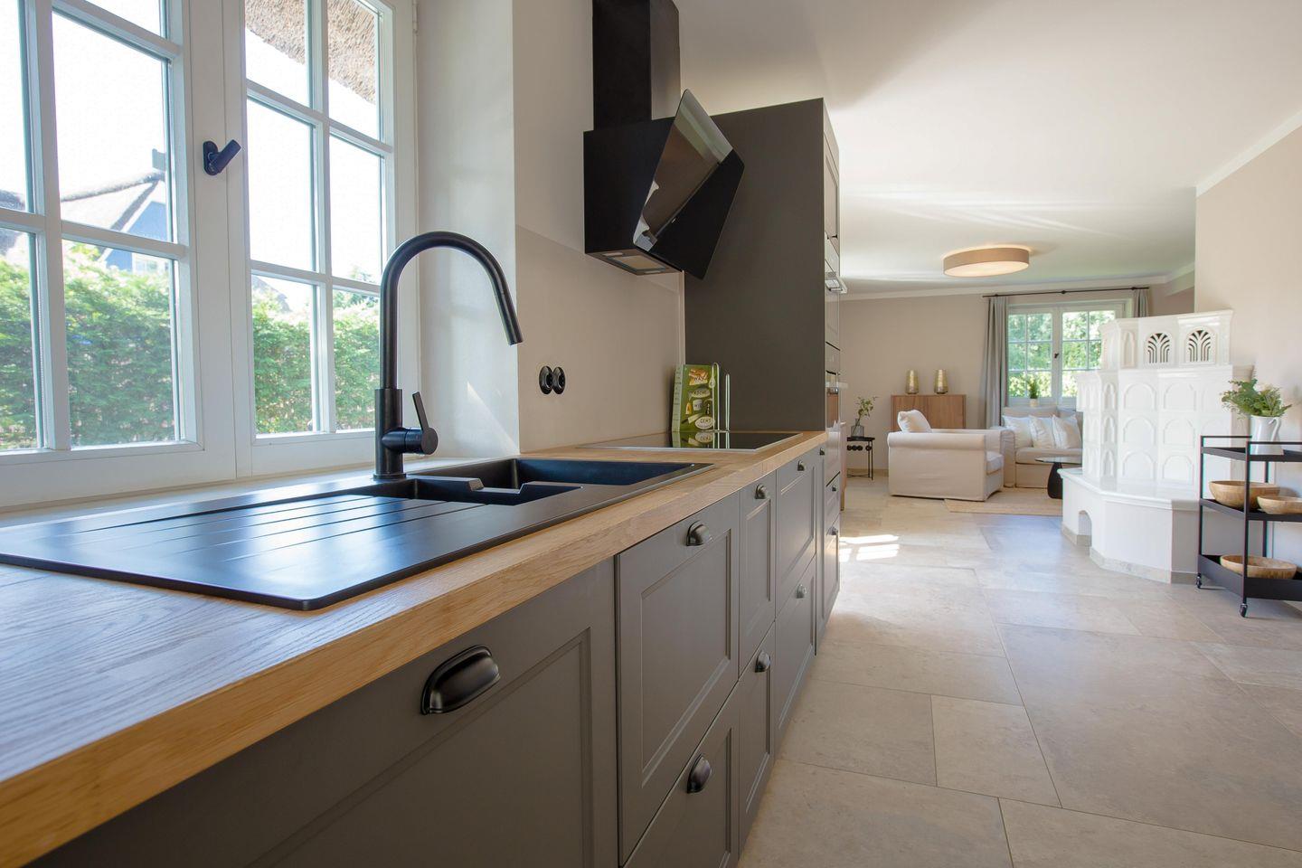 Das elegante, reetgedeckte Ferienhaus liegt unmittelbar hinter dem Deich und der Dünenlandschaft von Wustrow, direkt am Strandübergang. Gerade mal 30 Meter trennen dich vom feinsandigen Badestrand. Der Deich bietet zudem beste Möglichkeiten für Rad- und Wandertouren zu den umliegenden Dörfern. Das Ortszentrum von Wustrow befindet sich circa 2,5 Kilometer entfernt. Hier kannst du entlang der Strandpromenade schlendern oder es dir in einem der vielen Cafés und Restaurants gemütlich machen.