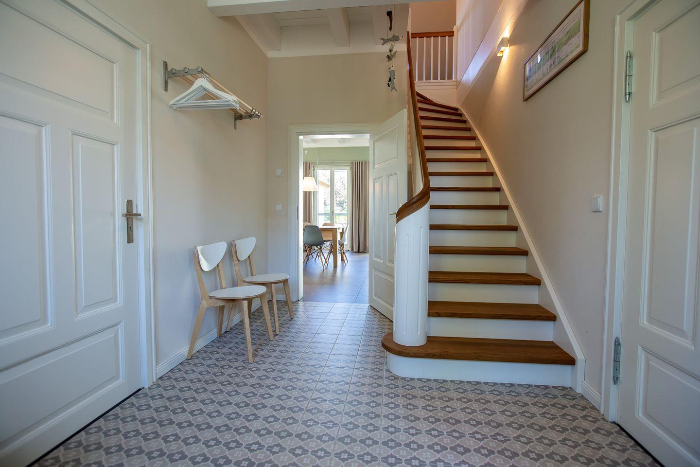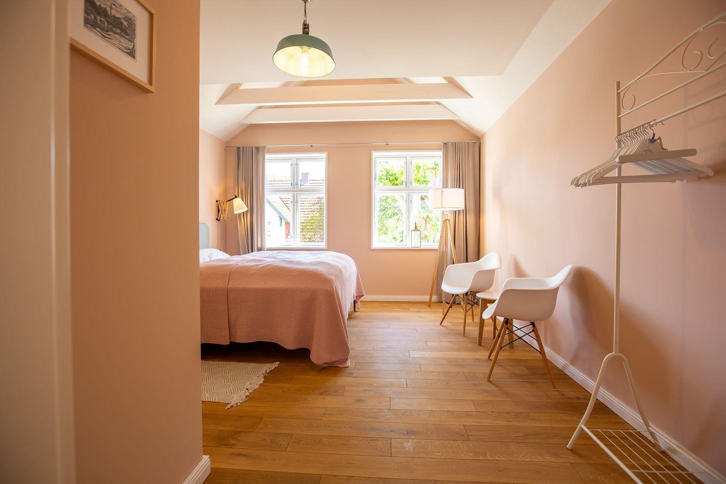 In einer mit Bäumen gesäumten Seitenstraße befindet sich das wunderschöne und historische "Kapitänshaus Luv & Lee" – nur 500 Meter vom Meer und seinem herrlichen Sandstrand entfernt. Umgeben von weiten Boddenwiesen, dem idyllischen Hafen, dem Naturschutzgebiet Barnstorf und dem quirligen Zentrum, passt sich das in 2021 aufwendig sanierte Ferienhaus wunderbar an die Region und Kultur des einstigen Fischerortes an.