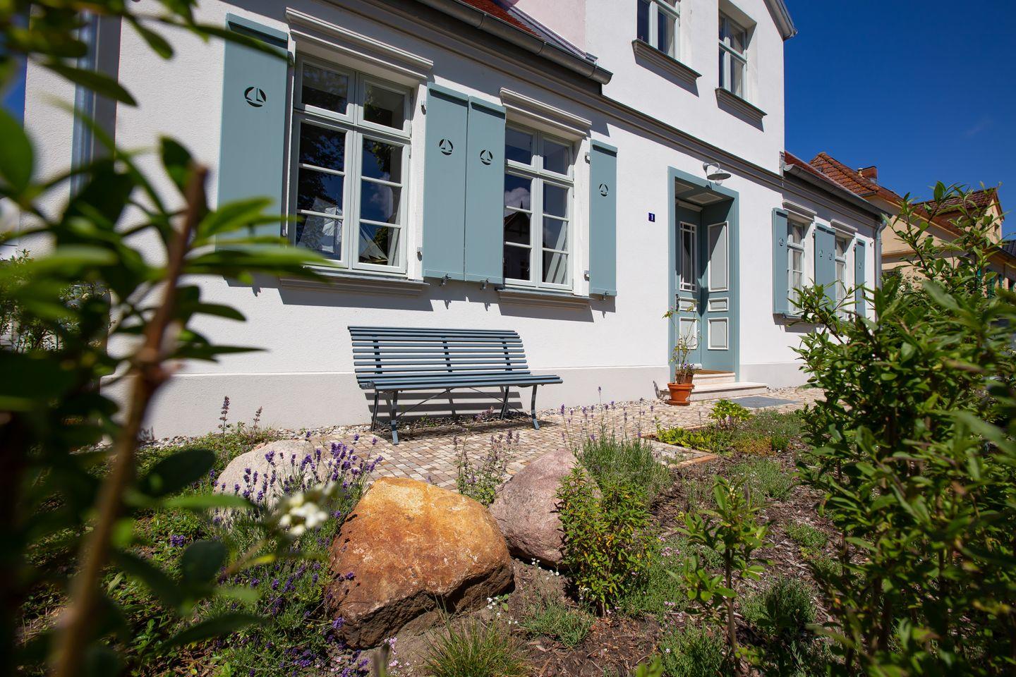 Das historische Kapitänshaus Luv & Lee in Wustrow bietet erholsamen Urlaub nahe Ostsee und Strand mit Sauna und großem Garten.