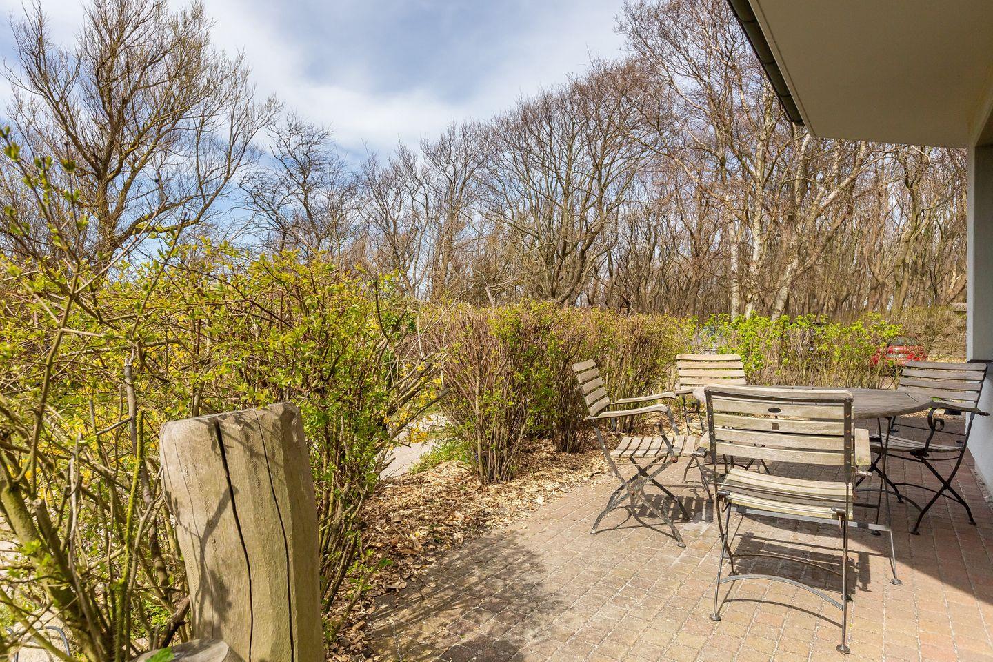 Im Außenbereich befindet sich eine Steinterrasse, die du von Wohnraum und Hauptschlafzimmer betreten kannst. Dank der Holzbohlen und heimischen Bepflanzung genießt du hier private Augenblicke mit einem herrlichen Blick auf den Deich - Meeresrauschen inklusive. Zur Ferienwohnung gehört außerdem ein PKW-Stellplatz.