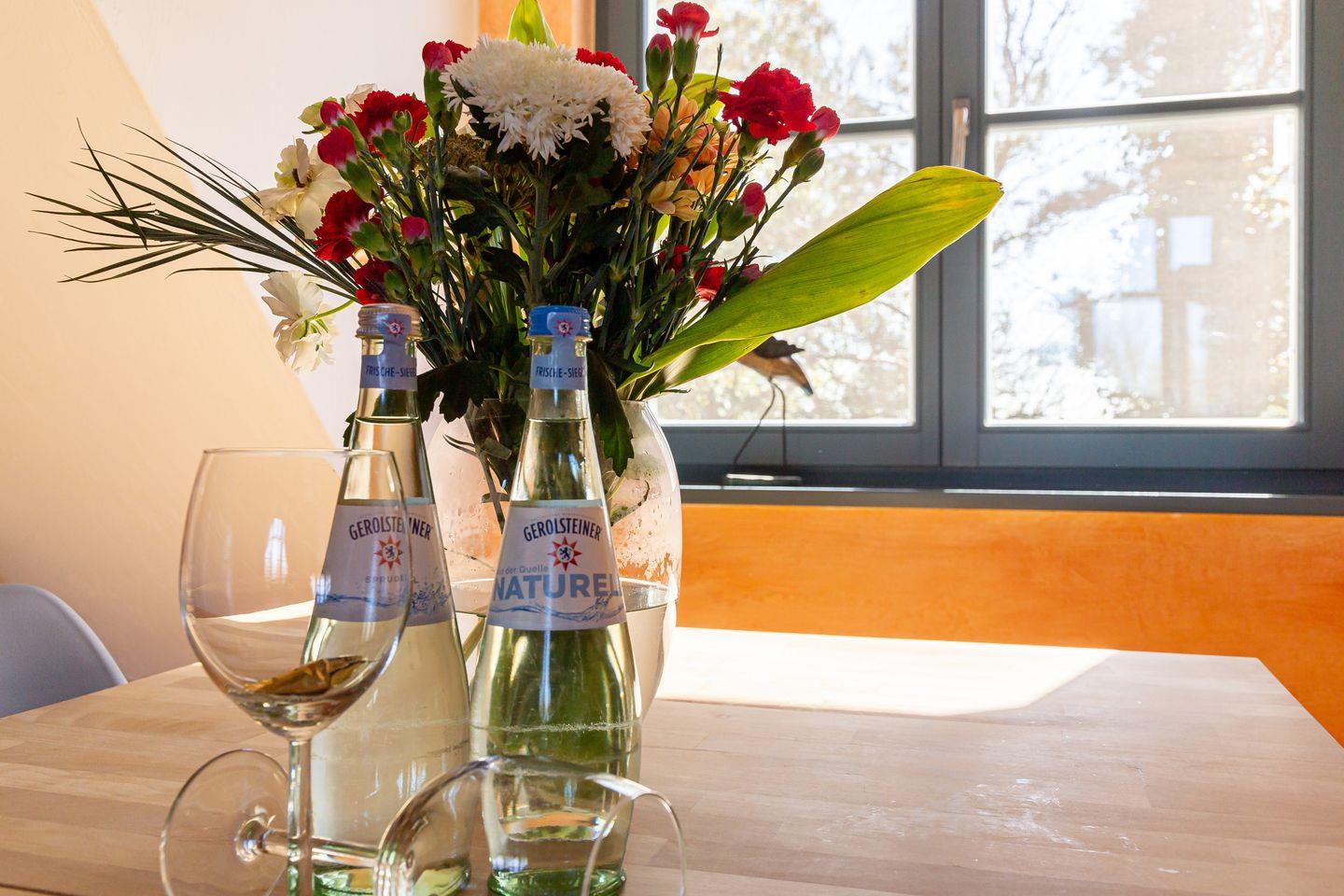 Im Hausflur befindet sich der Hauswirtschaftsraum mit Waschmaschine und Trockner. Beide Geräte werden über einen Münzer betrieben und stehen allen Mietparteien zur Verfügung.
